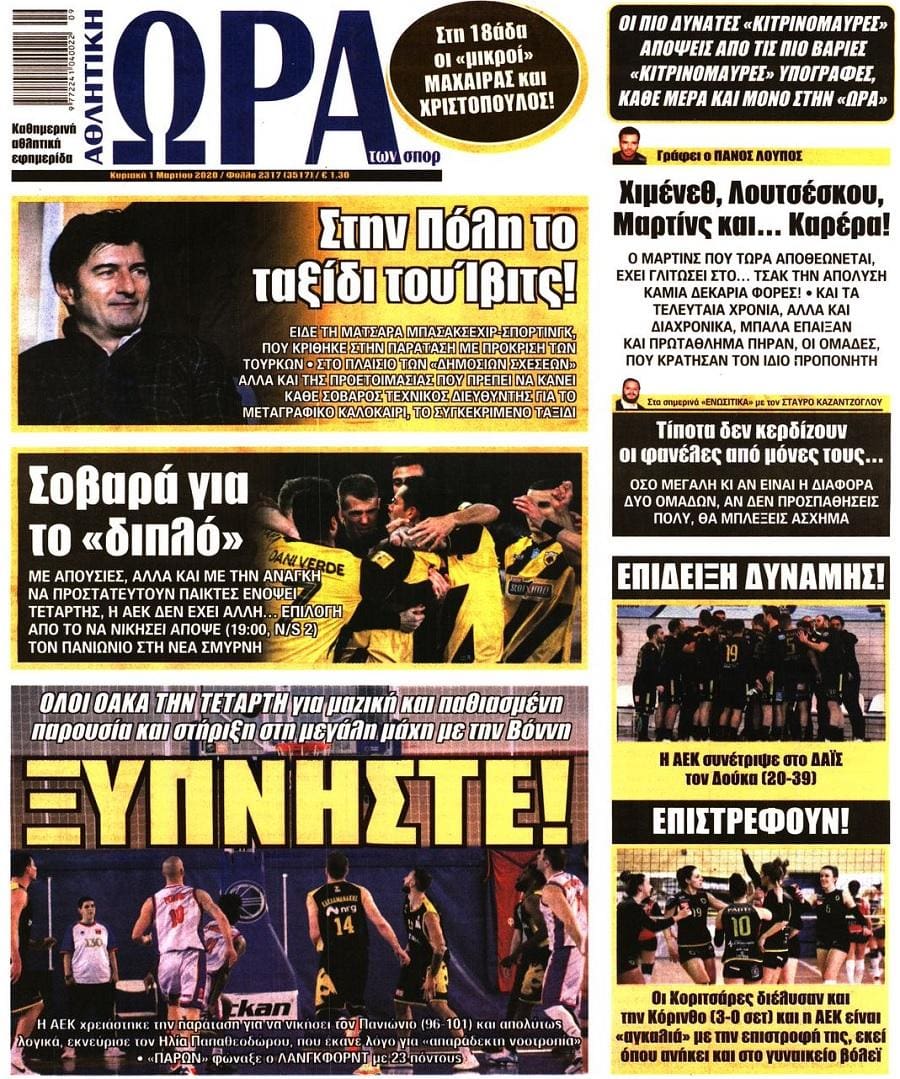 Διαβάστε μέσω AEK LIVE όλα τα πρωτοσέλιδα της ΑΕΚ (και μόνο…) των σημερινών αθλητικών εφημερίδων