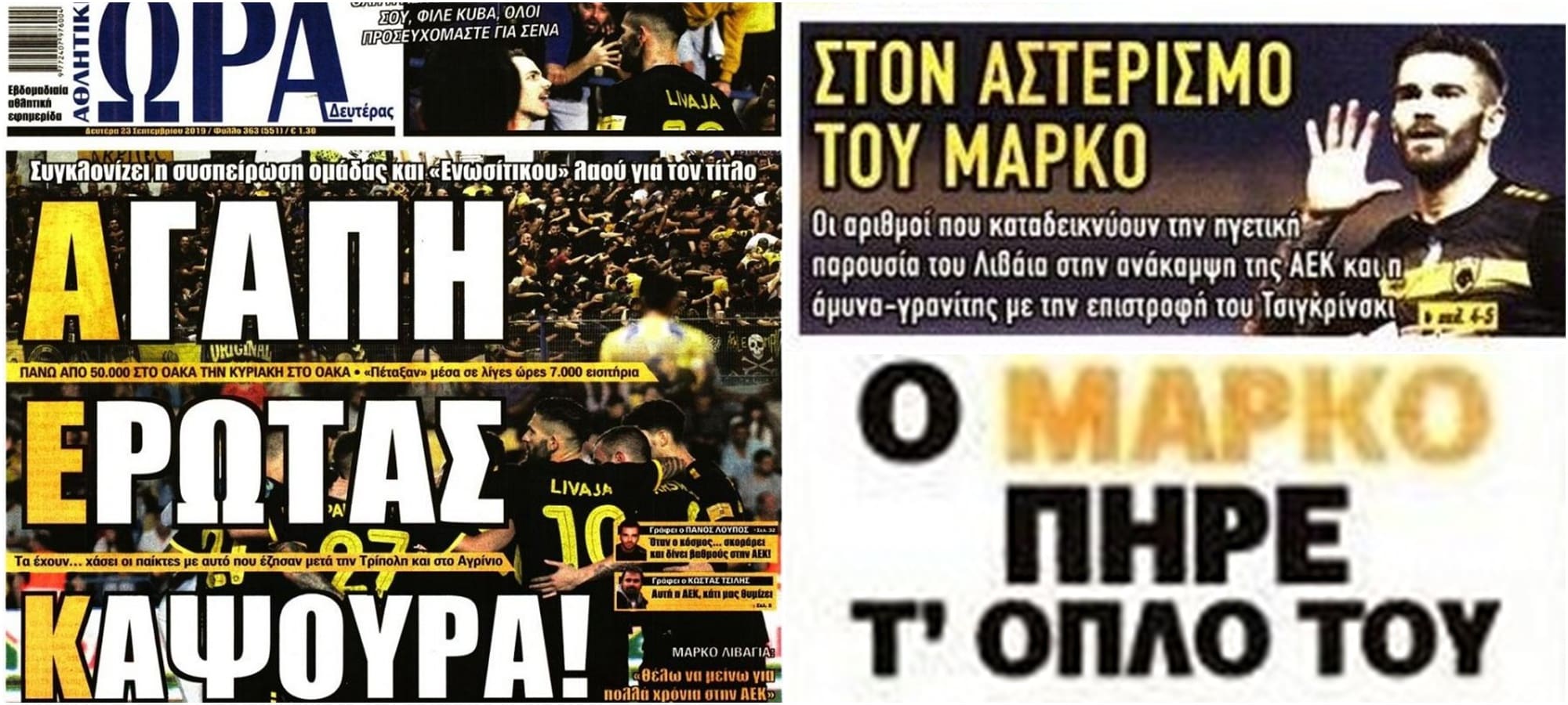 Πανηγύρια… στην Αθλητική Ώρα της Δευτέρας για τη νέα νίκη της ΑΕΚάρας μας… Η Sporday αποθεώνει τον Μάρκο Λιβάγια Η Livesport γράφει για το δίδυμο που...