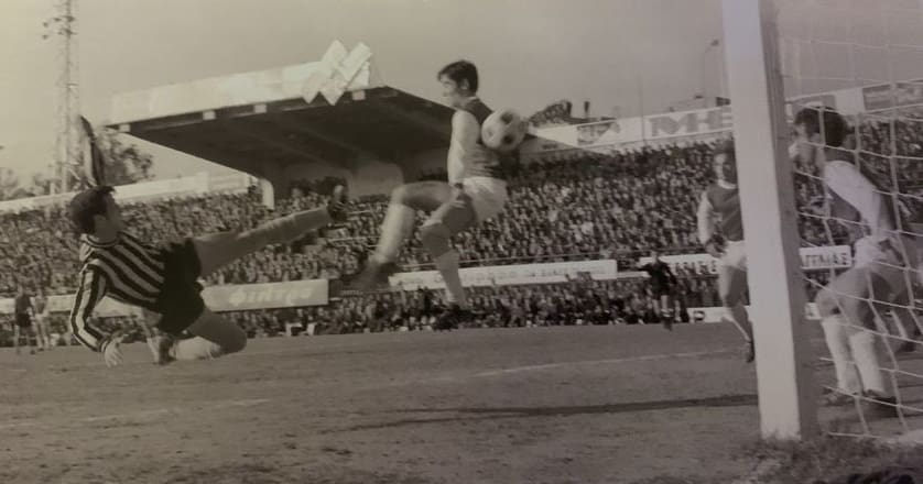 15 Φεβρουαρίου 1972. Λεωφόρος Αλεξάνδρας. Ο Σπύρος Πομώνης με αυτό το εναέριο δαντελένιο σουτ, κεραυνοβολεί τον Τάκη Οικονομόπουλο και δίνει τη νίκη στην ΑΕΚ με 1-0....