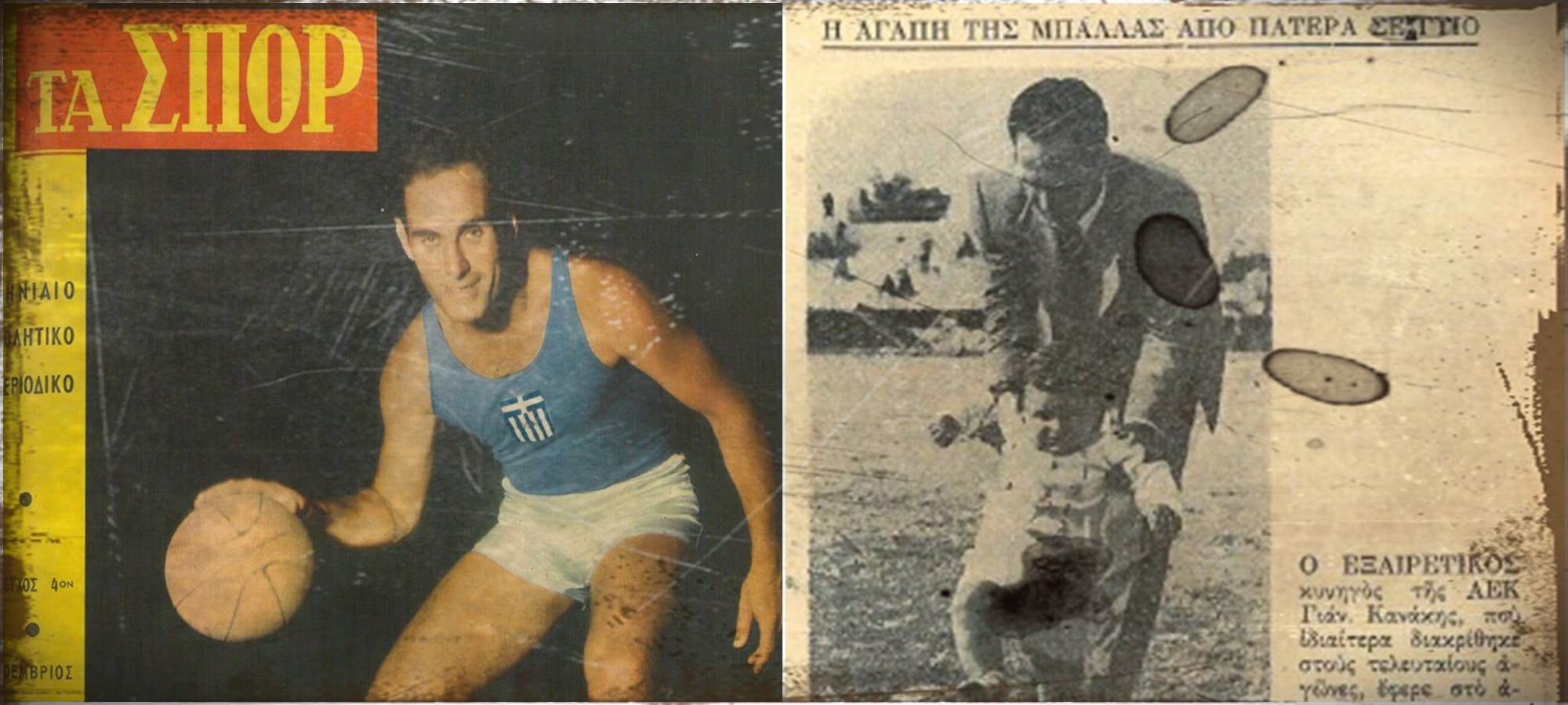 Περιοδικό “Τα ΣΠΟΡ”, τεύχος 4, Δεκέμβριος 1957. Ο θρυλικός Γιάννης Κανάκης της ΑΕΚ μαθαίνει τα βήματα του ποδοσφαίρου στον γιό του… Αρχείο: Νικόλα Αγγελίδη