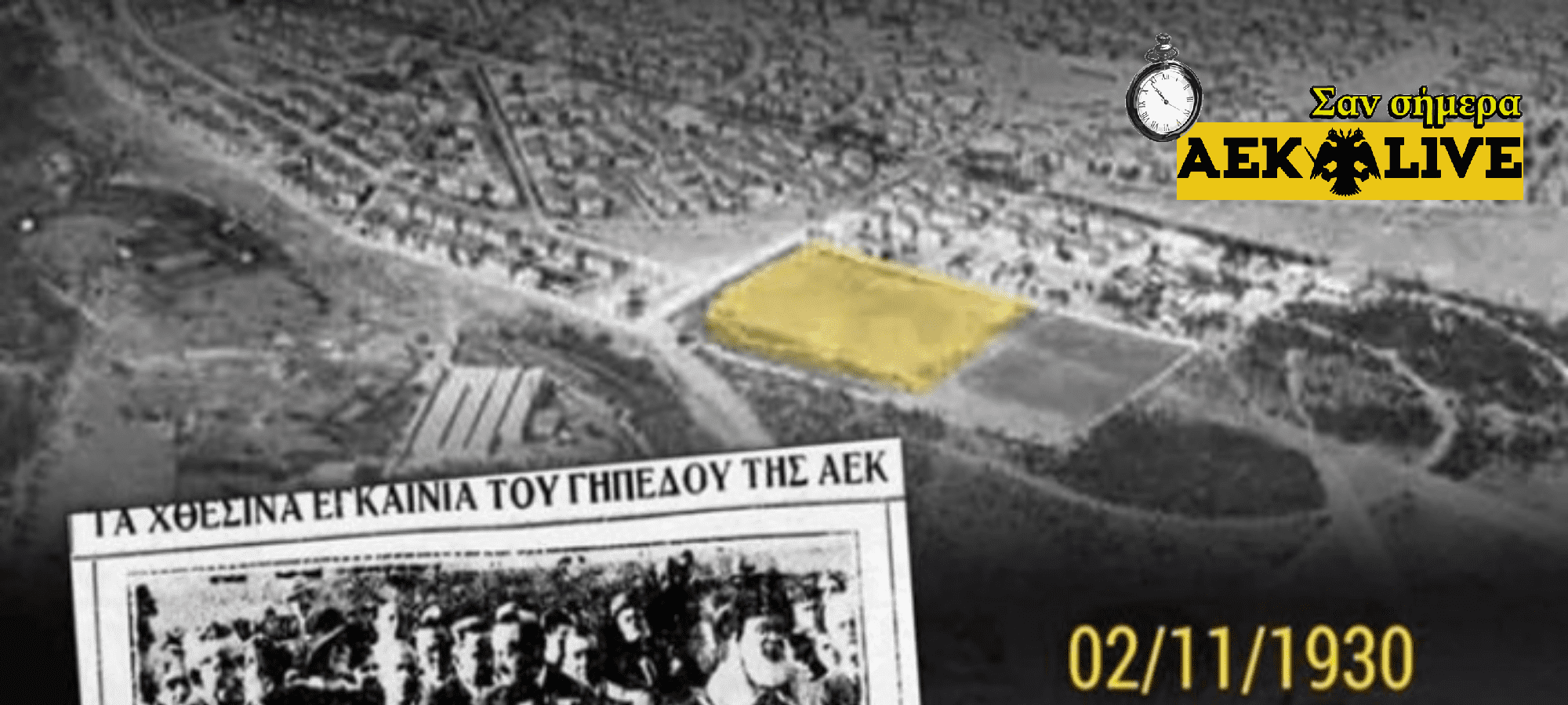 2-11-1930. Σε φιλική αναμέτρηση η ΑΕΚ αντιμετώπισε τον Ολυμπιακό στο νέο γήπεδο της περιοχής Ποδονίφτης, τη σημερινή Νέα Φιλαδέλφεια. Το παιχνίδι αυτό ακολούθησε μετά τα εγκαίνια...