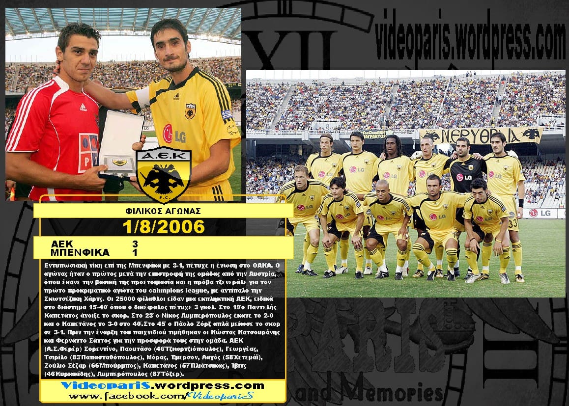 1-8-2006. Εντυπωσιακή νίκη επί της Μπενφίκα με 3-1, πέτυχε η ένωση στο ΟΑΚΑ. Ο αγώνας ήταν ο πρώτος μετά την επιστροφή της ομάδας από την Αυστρία,...