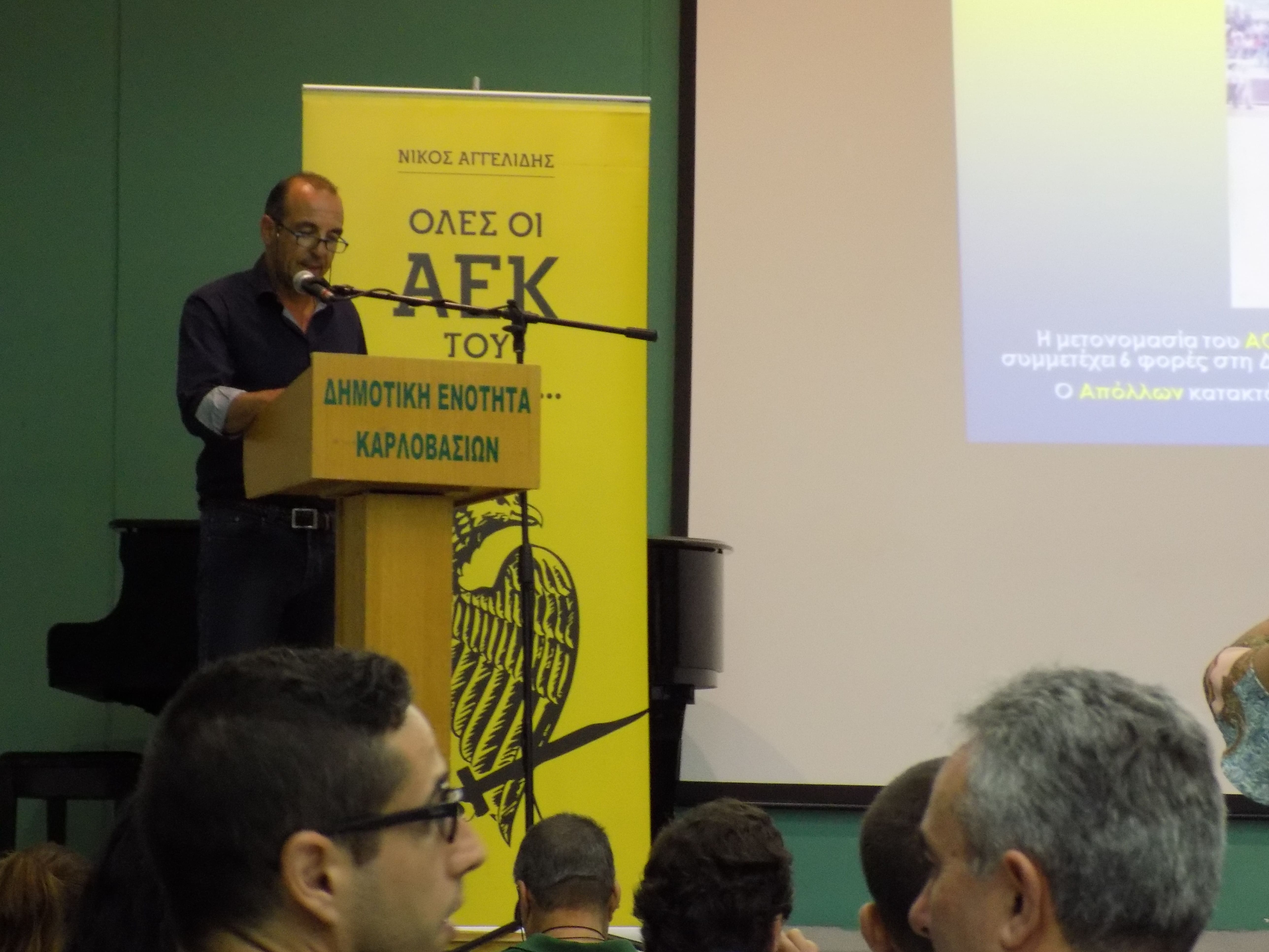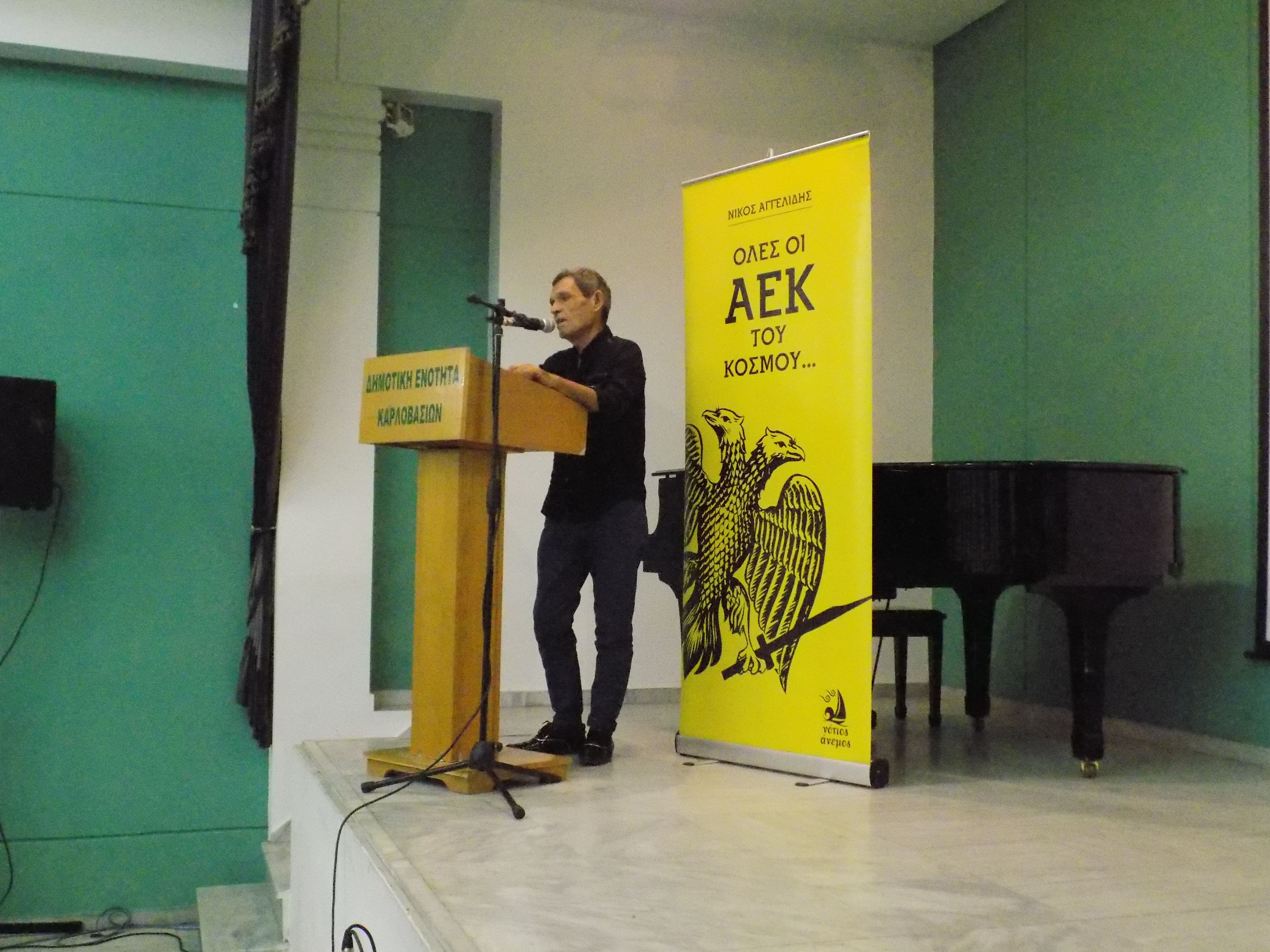 Και η Σάμος προσκύνησε τον δικέφαλο αετό. Με αγάπη και λατρεία για την ΑΕΚ. Παρουσιάστηκε χθες Κυριακή το βράδυ στο Καρλόβασι το βιβλίο ΟΛΕΣ ΟΙ ΑΕΚ ΤΟΥ ΚΟΣΜΟΥ του Νίκου Αγγελίδη.