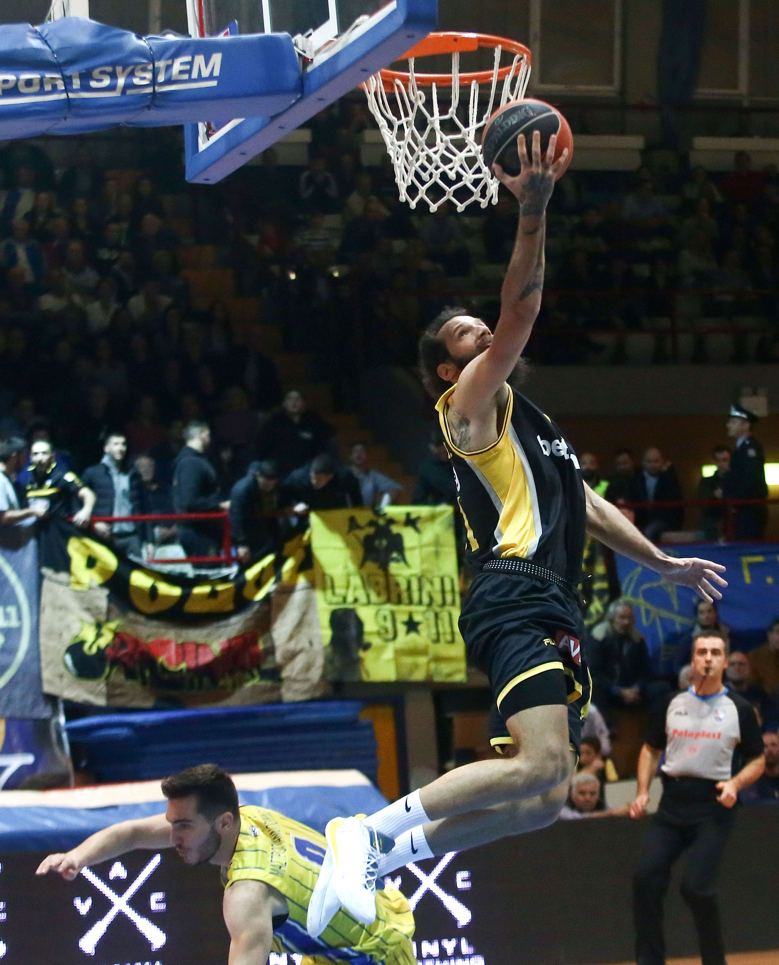 @@@ ΕΤΣΙ καταλήξαμε στον τίτλο «ΧΑΡΙ(Η)Σ στον κοτσιδομάλλη Σαμψών και στον …ΚΙΘαρίστα με το πολυβόλο, η ΑΕΚ πέρασε αλώβητη από το λίαν υπολογίσιμο Λαύριο, που βράβευσε, πριν από τον αγώνα τον πρώην άσο του, 25χρονο σέντερ Δημήτρη Κακλαμανάκη. Πενταδάτος ο τιμηθείς (με 4 πόντους), μαζί με τους Ρος, Λάνγκφορντ, Ματσιούλις, Χρυσικόπουλο. Αυτή την φορά αλλαγή ο Νίκος Γκίκας (μόνο με 6΄) και άποντος, όπως ήταν και Τολιόπουλος(4΄), Χρυσικόπουλος (17΄), Ρος (36΄), Μαυροειδής(3΄).Κατά την γνώμη μας είναι οξύτατο το «κιτρινόμαυρο» πρόβλημα με τη μισή ομάδα άσφαιρη και με δύο (προκειμένου για το Λαύριο) το 52,2% από τους 73 συνολικά πόντους! Θα ξαναβρεθούμε πιθανότατα ενώπιον κι άλλων όπως ο «Ισπανός Καγιές της Ράστα Βέχτα» και μαζί με «στημένη» διαιτησία , όπως το τριο με τους Ισπανό- Λετονό- Σέρβο, κατά την περασμένη Τρίτη, και θα τρέχουμε, αλλά δεν θα φτάνουμε… Ο αποτελεσματικός και γενικά με δοκιμασμένη ικανότητα γκάρντ, Κέντρικ Ρέϊ, στο Λαύριο μόνο στον πάγκο (…άραγε για να μη κακοκαρδίσουμε τον παραμερισθέντα μόνο για το Τσάμπιονς Λιγκ, ανύπαρκτοΤσάμερς; ) , αντίθετα με τον επίσης επιστρέψαντα Στέφαν Γιάνκλοβιτς (2π.), που έπαιξε 12΄. Εκτός πρωταθλήματος και κυπέλλου, λοιπόν, θα είναι πλέον ο «πουθενάς» 35χρονος συνταξιούχος του ΝΒΑ, γκαρντ Μάριο Τσάλμερς.
