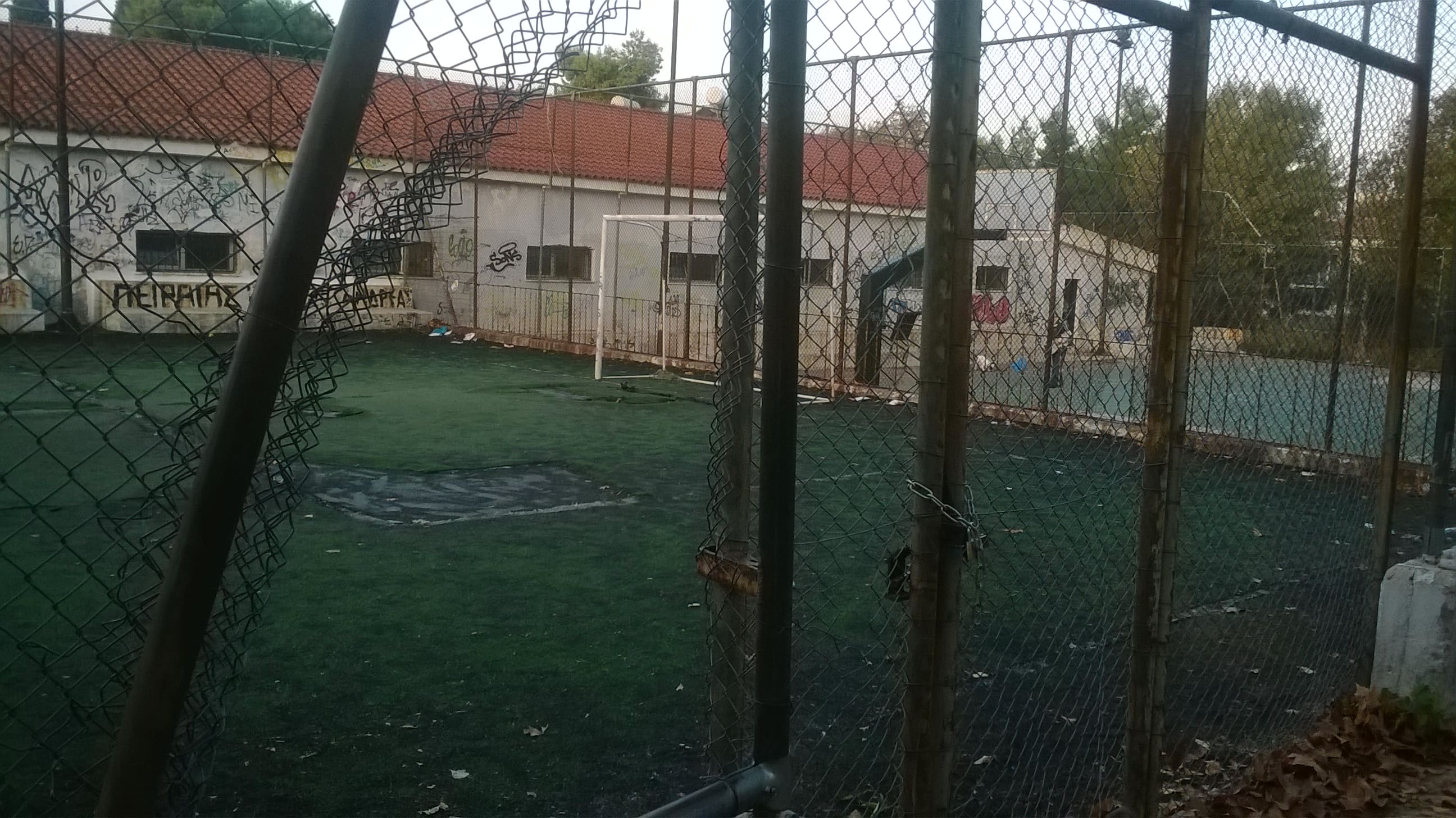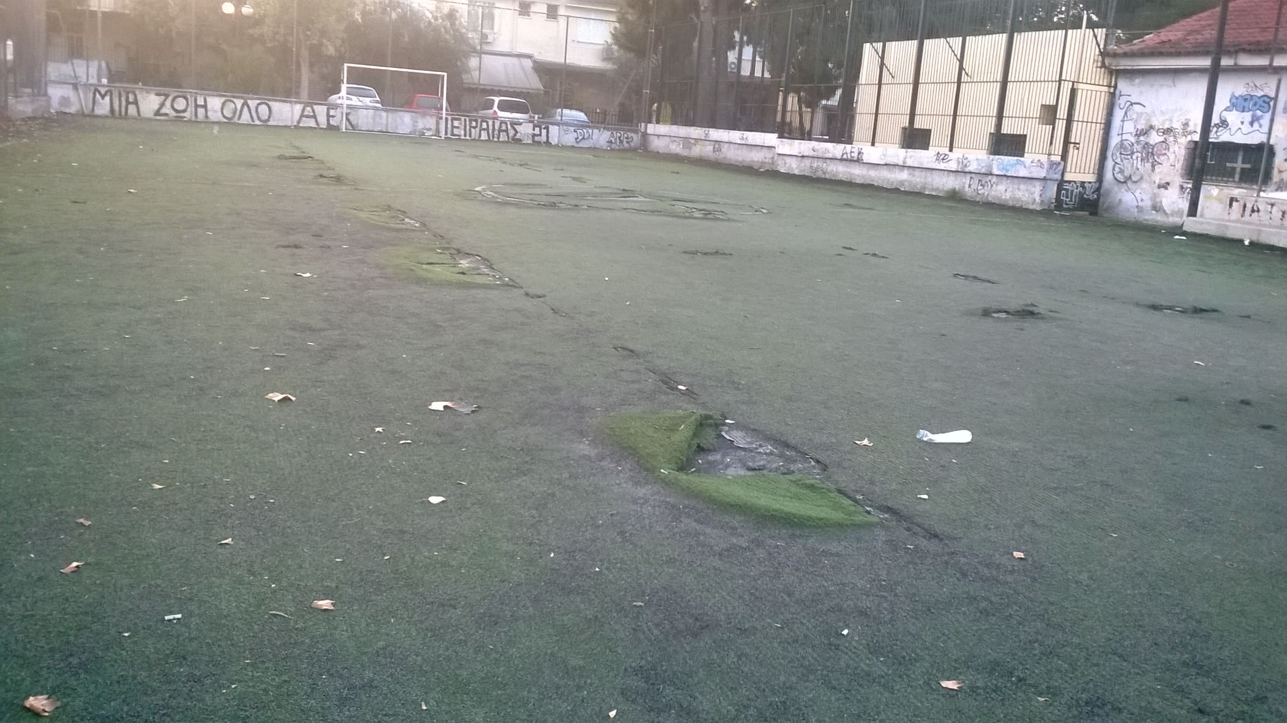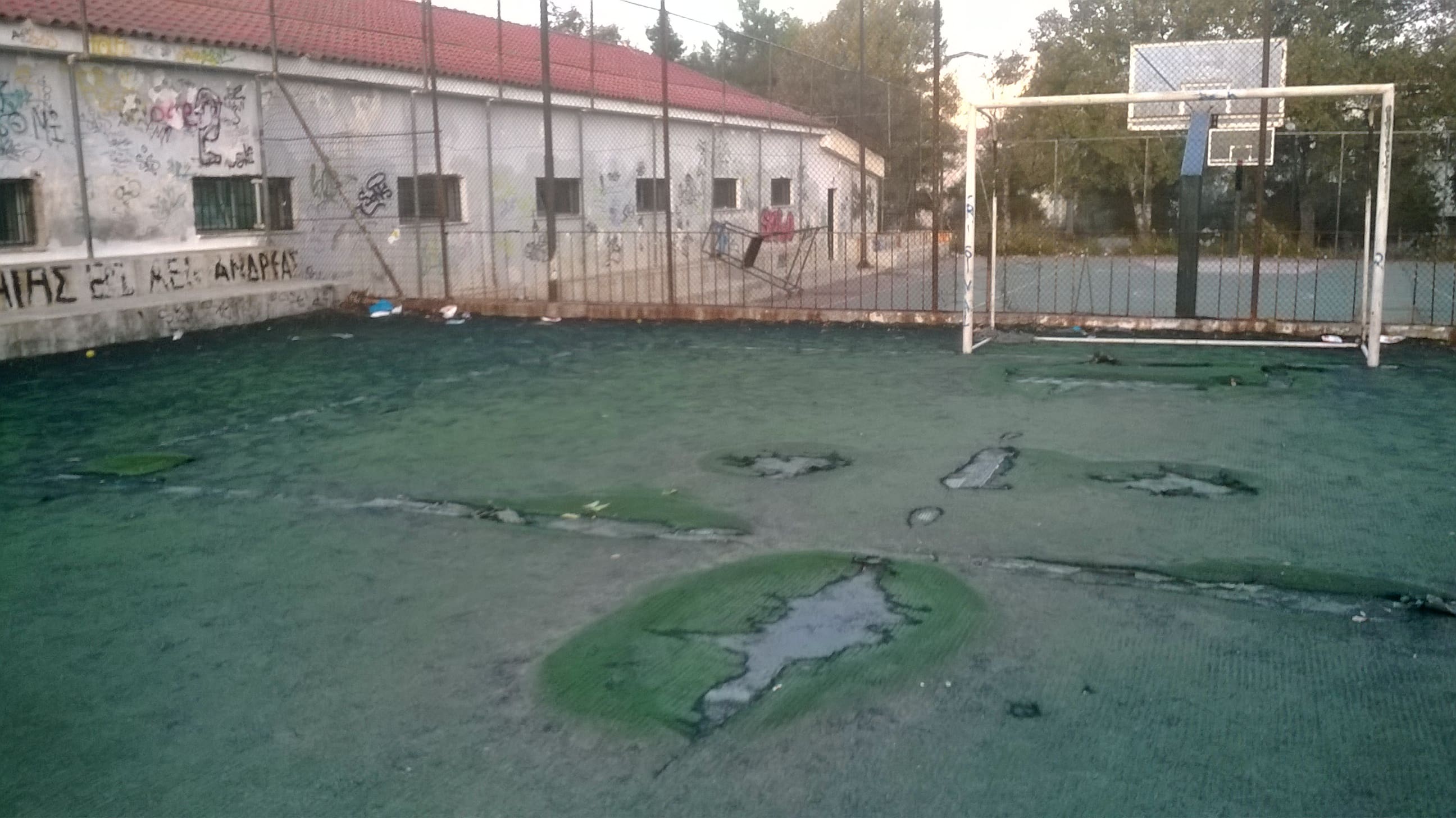 Μια απίστευτη παγίδα για τα παιδιά που πηγαίνουν εκεί για να παίξουν ποδόσφαιρο και να εκτονωθούν… Ελλοχεύουν κίνδυνοι ανά πάσα στιγμή κάποιο παιδί να βγάλει το χέρι του ή το πόδι τους παίζοντας σε αυτόν τον άθλιο χώρο…