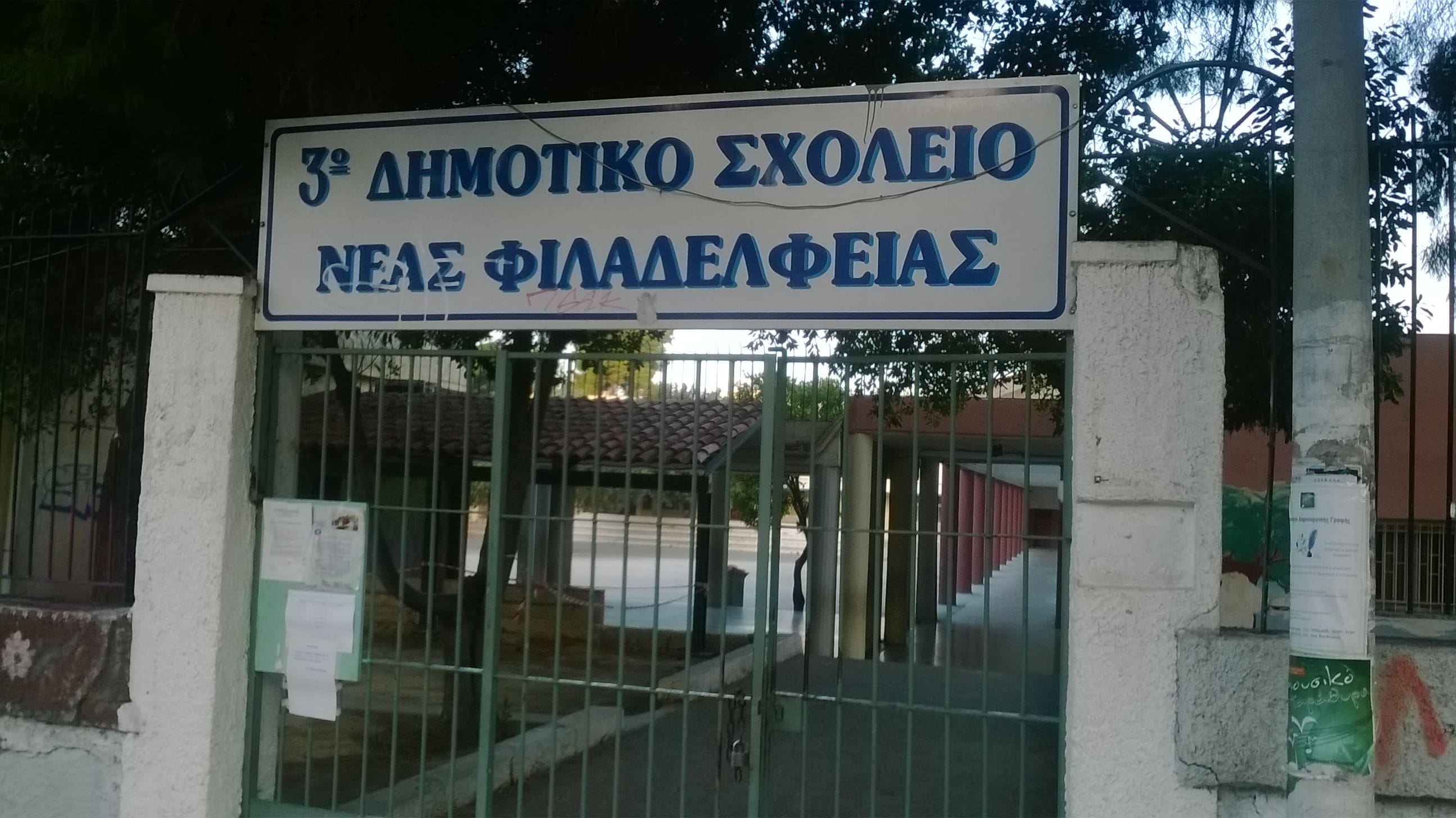 Θα περίμενε κανείς από τη νέα Δημοτική Αρχή Φιλαδέλφειας – Χαλκηδόνας να έχει επιδείξει περισσότερο ή ουσιώδες ενδιαφέρον σε θέματα καθημερινότητας όπως είναι για παράδειγμα η ασφάλεια των μαθητών… Περπατώντας στις ονειρεμένες (πάντα…) γειτονιές της Φιλαδέλφειας ήρθα αντιμέτωπος με μια αποκαρδιωτική εικόνα. Είναι το γηπεδάκι που βρίσκεται δίπλα στις εγκαταστάσεις του 3ου Δημοτικού σχολείου Νέας Φιλαδέλφειας.