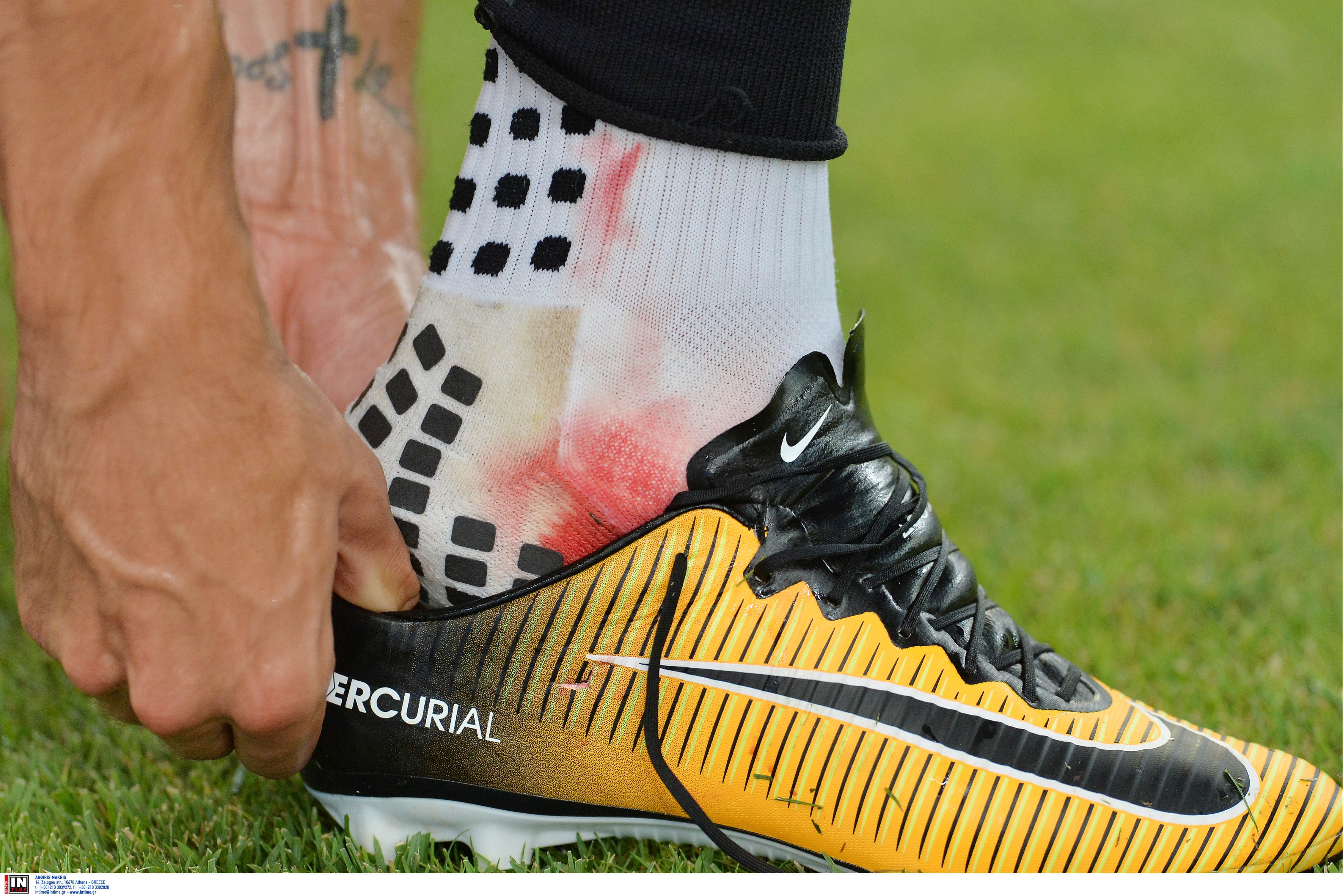 Χαρακτηριστική η φωτογραφία από το τραυματισμένο πόδι του επιθετικού της ΑΕΚ.