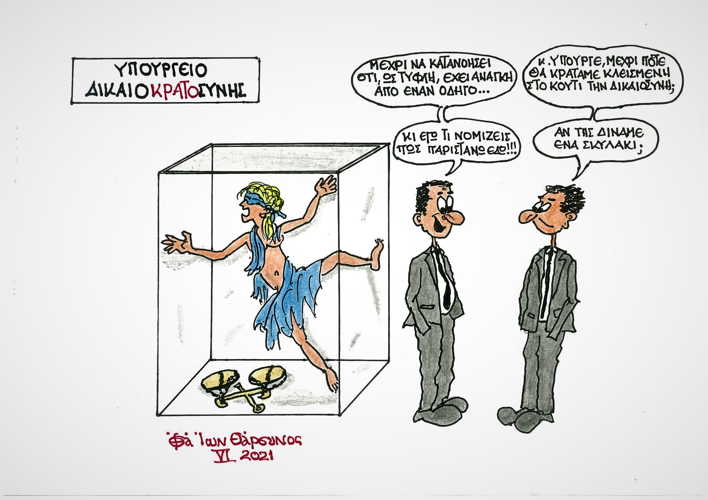 Σε αυτή την περίπτωση ο Ελληνικός Λαός, στο όνομα του οποίου οι αποφάσεις των δικαστηρίων εκτελούνται, χαμπάρι μάλλον δεν θα πάρει. Και αν κάποιοι αντιδράσουν, οι φωνές τους από τον ορυμαγδό των πουλημένων ΜΜΕ θα σκεπαστούν και οι όποιες άλλες αντιδράσεις τους από τον νόμο και την τάξη θα αντιμετωπιστούν. Έτσι ετούτοι οι απατεώνες θα τη γλυτώσουν, εντιμότατοι θα συνεχίσουν από το πόπολο να θεωρούνται και τα δόντια τους θα δείχνουν, έτοιμοι ό,τι απόμεινε να ξεκοκαλίσουν. Μακάρι λαθεμένη η εκτίμησή μου να αποδειχτεί κι εύχομαι η δικαστική λειτουργία τον συνταγματικό της ρόλο τελικά να παίξει, ώστε σε τούτο τον τόπο να δούμε κάποτε την Δικαιοσύνη τυφλά να αποδίδεται και τους απατεώνες, όποιοι κι αν είναι αυτοί, στη φυλακή επιτέλους να οδηγούνται! Ίδωμεν…