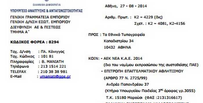 Για όποιον ενδιαφέρεται, αρκεί να πληκτρολογήσει στην αρχική σελίδα του Εθνικού Τυπογραφείου στο πεδίο Α.Ε-ΕΠ.Ε και στο πεδίο Περισσότερα κριτήρια την ονομασία ΑΕΚ-ΝΕΑ ΚΑΕ 2014…και θα “ανοίξουν”όλα τα αποτελέσματα που αφορούν την ΑΕΚ.