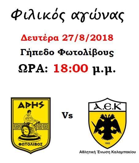 Φιλικός Αγώνας ανάμεσα στην ΑΕΚ και τον Άρη. Την ΑΕΚ της Δράμας (ΑΕΚαλαμπακίου) που φέτος αγωνίζεσαι τη Γ’ Εθνική κα στον Άρη Φωτολίβους