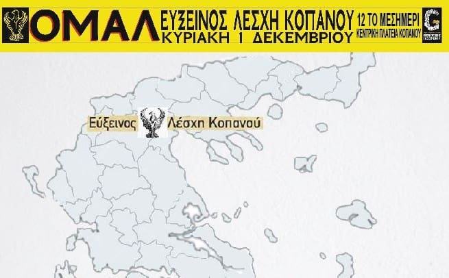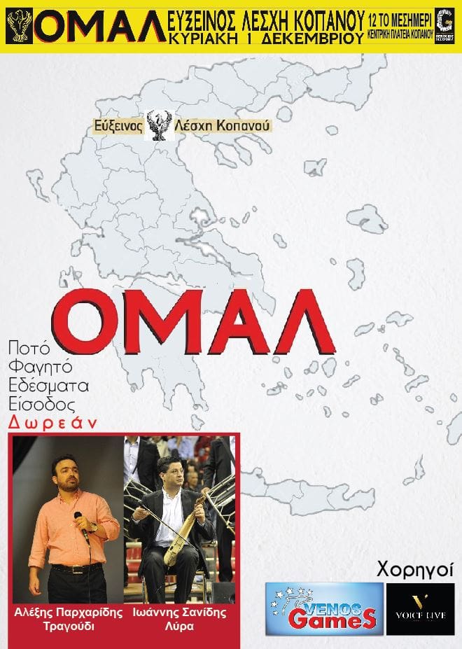 Η Ευξεινος λεσχη Κοπανου ειναι στο ποδι για την μεγαλυτερη εκδηλωση που εγινε ποτε στο χωριο μας ”ΟΜΑΛ, Πλατεια Κοπανού” στις 01-12-2019 και ωρα 12 το μεσημερι.
