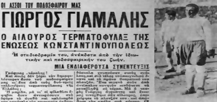 Το 1926 διεξάγεται αγώνας της ΑΕΚ με τον Ολυμπιακό στο γήπεδο της Λεωφόρου, που πρωτοχρησιμοποίησε σαν έδρα της, στον οποίο αγώνα η “Κιτρινόμαυρη Ομάδα” γνωρίζει την ήττα με 5-2. Όμως αυτός ο αγώνας έχει περάσει στην ιστορία σαν μια ιδανικότερη πρώτη έκφραση του “ευ αγωνίζεσθαι” στο Ελληνικό ποδόσφαιρο, με πρωταγωνιστή τον μέγιστο τερματοφύλακα της ΑΕΚ, τον Γιώργο Γιάμαλη, (1907 – 1985). Είχε σημειώσει ένα απ’ τα πέντε γκολ ο Ολυμπιακός, με τον Γιώργο Ανδριανόπουλο, αλλά η μπάλα είχε περάσει από τρύπα των δικτύων, χωρίς να το αντιληφθεί κανείς…