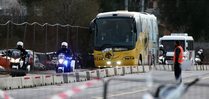 Εκατό Ενωσίτες υποδέχτηκαν την αποστολή της ΑΕΚ μετά το Καραϊσκάκη.