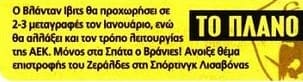 Η ΑΕΚ στα σημερινά πρωτοσέλιδα (31/10/2019)