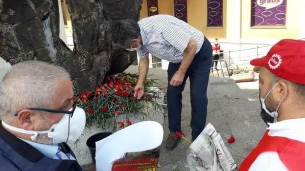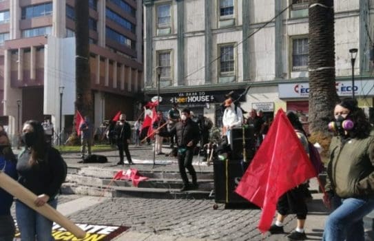 Valparaiso, 1 de mayo de 2020. Acto por el dia del trabajador en plaza Anibal Pinto Sebastian Cisternas/ Aton Chile., Valparaiso Chile Aton416015 *** Valparaiso, May 1, 2020 Labor Day event at Anibal Pinto Square Sebastian Cisternas Aton Chile , Valparaiso Chile Aton 416015 PUBLICATIONxINxGERxSUIxAUTxONLY Copyright: SEBASTIANxCISTERNAS/ATONxCHILE.