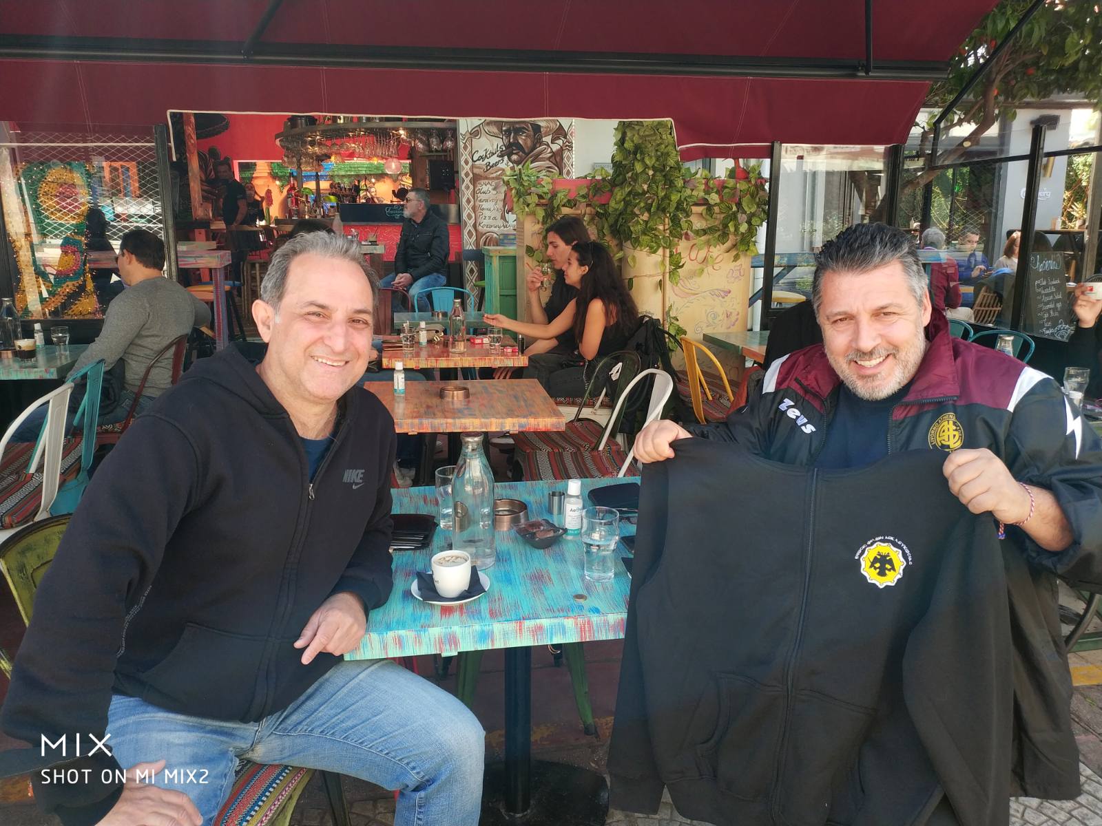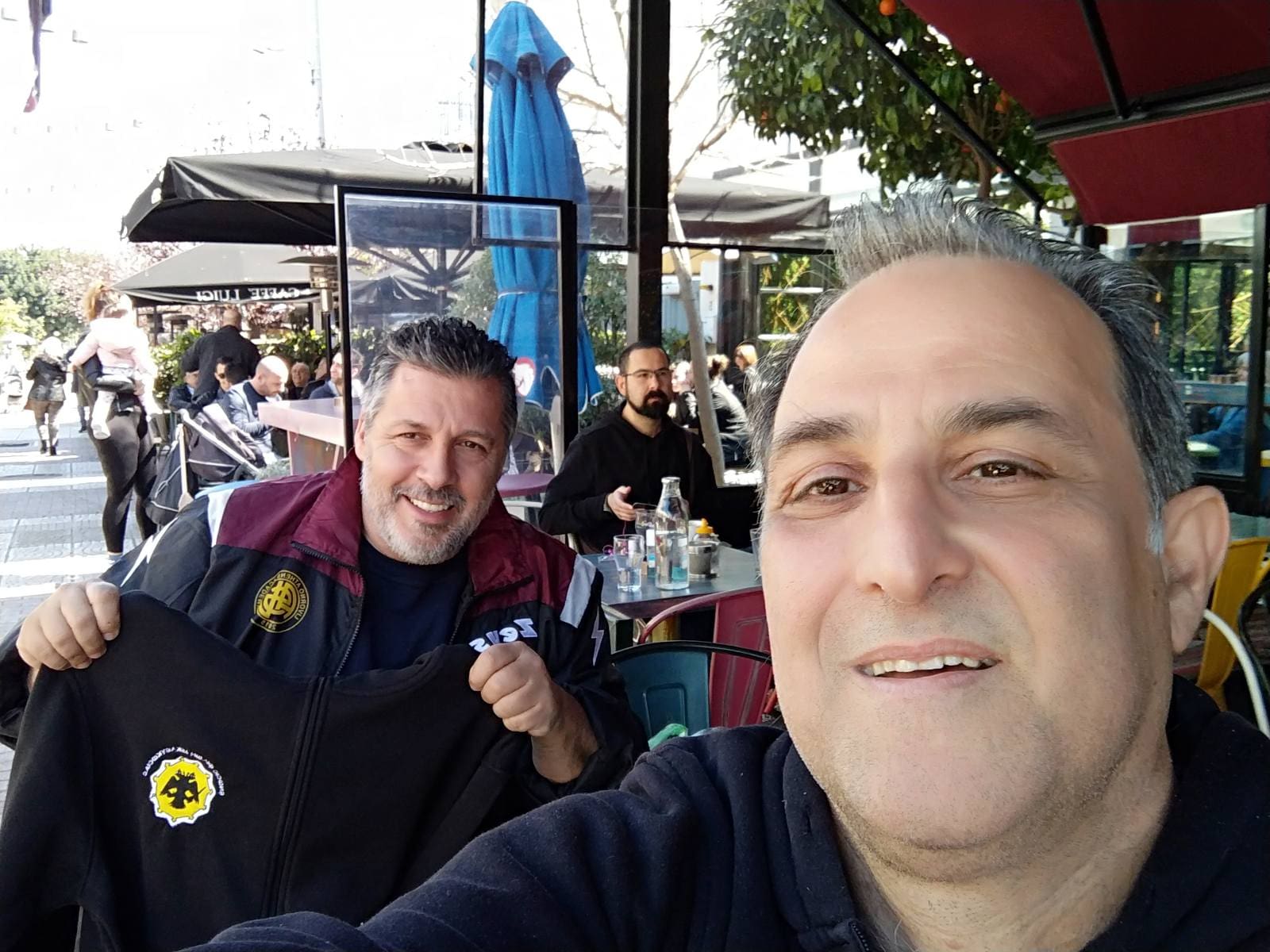 Ο Γιώργος Αθηαινίτης συναντήθηκε με τον Νικόλα Αγγελίδη και του παρέδωσε το νέο απερίγραπτης ομορφιάς κεντητό φούτερ, όπου απεικονίζεται και το γήπεδο της ΑΕΚ. ΕΝΤΥΠΩΣΙΑΚΟ, ΜΟΝΑΔΙΚΟ!!!