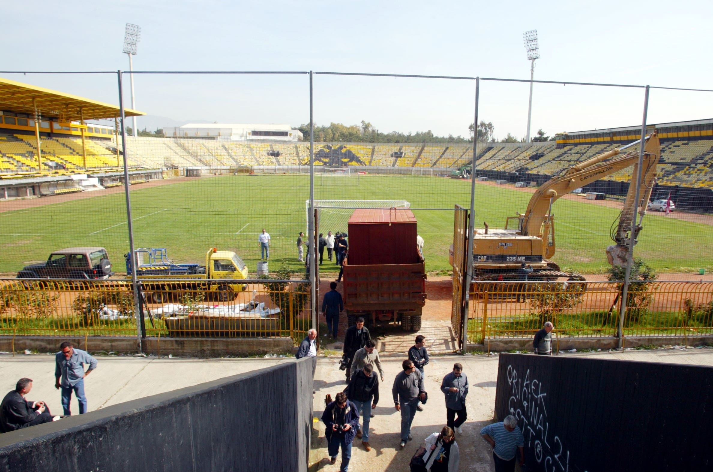 Το ίδιο βράδυ έγινε και το πλιάτσικο στα γραφεία του γηπέδου, όπου εξαφανίστηκαν από καφετιέρες μέχρι τρόπαια. Οι εργασίες ξεκίνησαν από τη θύρα 24, μάλιστα οι τεχνικοί της κατασκευαστικής δήλωσαν ότι η επικινδυνότητα του γηπέδου ήταν πολύ μεγάλη καθώς τα μπετά έπεφταν ΄σαν χαρτί΄, οι εργασίες θα συνεχίζονταν δεξιόστροφα (με τη θύρα 1-2, 3, 5-6-7 κ.λ.π.),ενώ αρκετοί φίλαθλοι μαζεύτηκαν για τελευταίες φωτογραφίες και ενθύμια. Σε λιγότερο από ένα μήνα το “Ν.Γκούμας” και το “Γ.Μόσχος” ήταν πλέον παρελθόν.