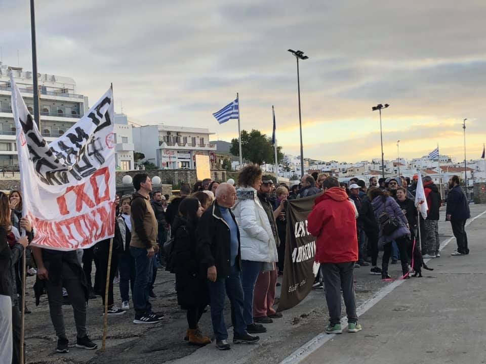 Μετά το χθεσινό βράδυ και σήμερα το πρωί πολίτες της Τήνου βρέθηκαν στο λιμάνι του νησιού, εμποδίζοντας τις μπετονιέρες που μετέφεραν το σκυρόδεμα, το οποίο θα “πέσει”, προκειμένου να διαμορφωθούν οι βάσεις των ανεμογεννητριών στην περιοχή “Πράσσα”, να κατέβουν από το πλοίο