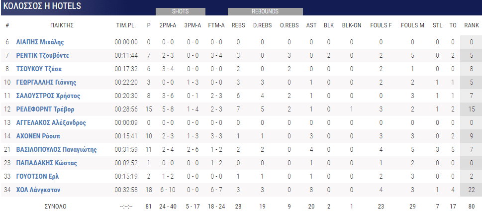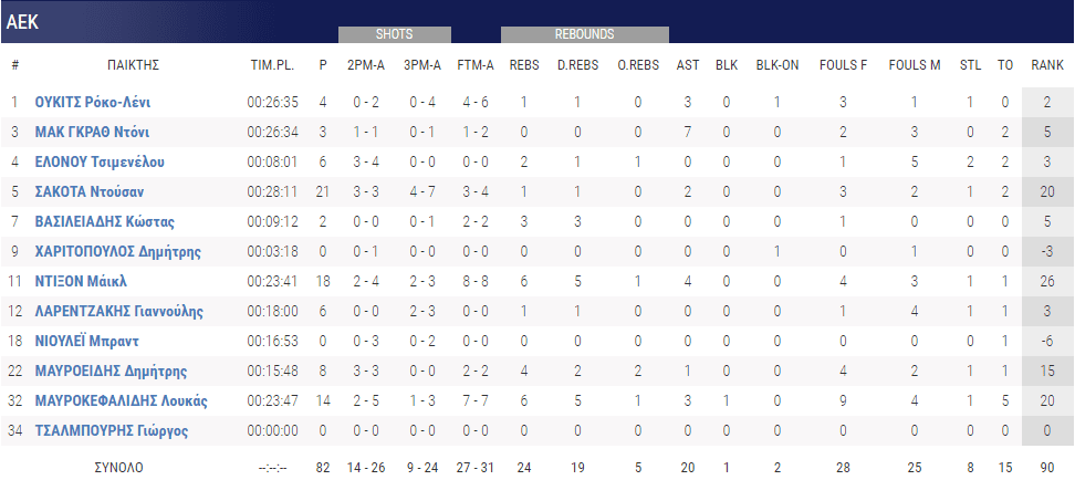 Τα πολλά τρίποντα σε κρίσιμα σημεία από τους Ντίξον και Σάκοτα έπαιξαν τον δικό τους σημαντικό ρόλο στην χθεσινή επικράτηση της ΑΕΚ επί του Κολοσσού. Άλλη μία πολύ καλή εμφάνιση και από τον Λουκά Μαυροκεφαλίδη, σε πολύ ρηχά νερά ο Ούκιτς.