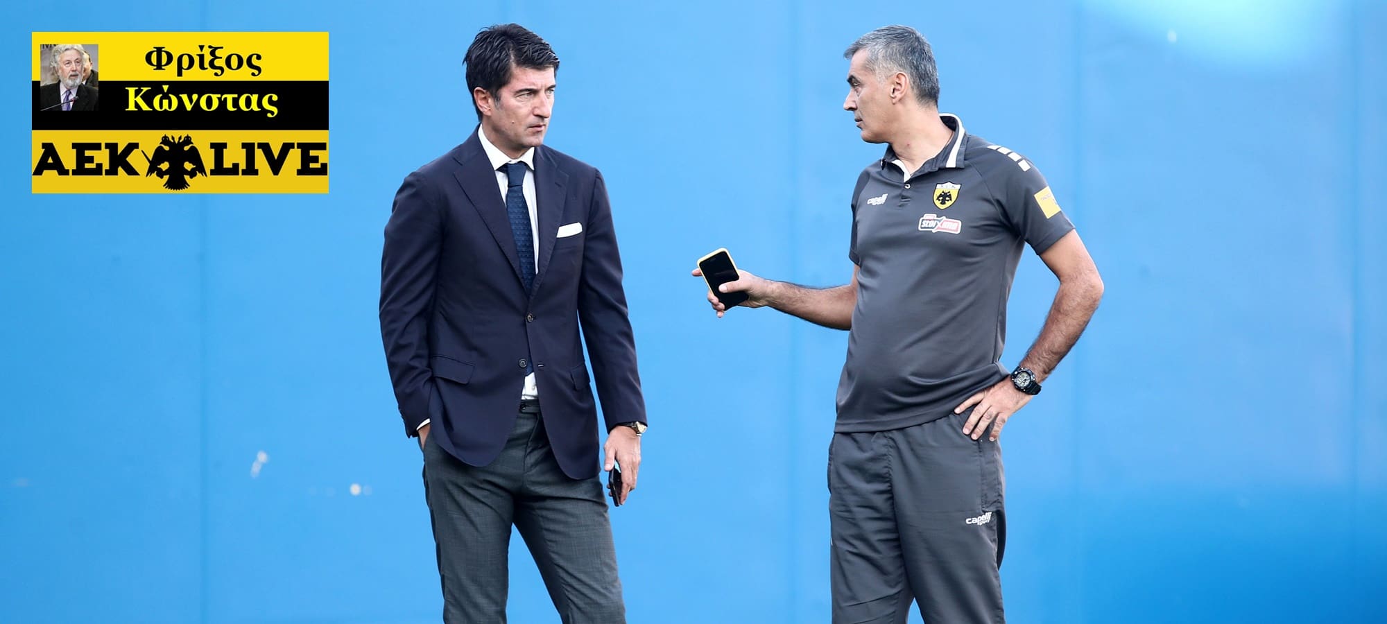 – Τον τεχικό διευθυντή , που κάλυψε το κενό του πολύ σοβαρά αποτυχόντα Νίκου Λαμπρόπουλου (=όπου «ταφόπλακα» του ήταν η επιλογή του υπό τον Καρντόσο πολυμελούς πορτογαλικού «προσκοπικού» , αλλά πανάκριβου, προπονητικού τιμ) . Και τον «εξ αριστερών» συνεργάτη του Νίκου Κωστένογλου (δεδομένου, πως «εκ δεξιών του» έχει τον Γιώργο Αλεξόπουλο), τον παλαόμαχο διεθνή τερματοφύλακα , με τα εύσημα «του διαδόχου» του τεράστιου Στέλιου Σεραφείδη και την ταπεινότητα του, με την ιστορική απόρριψη της επιγραφής «ήρωας» , που θέλησαν ΜΜΕ να του απονείμουν δίκην … «ποδοσφαιρικού Θεοδώρου Κολοκοτρώνη»!