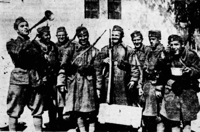 Ένας από τους μεγαλύτερους αθλητές της ιστορίας της ελληνικής ποδηλασίας, ο θρυλικός Καψοκέφαλος της ΑΕΚ, μετέπειτα εκλέκτορας της Εθνικής ομάδας και πρόεδρος της Ομοσπονδίας Ποδηλασίας, διακρίνεται σε φωτογραφικό στιγμιότυπο (με την σάλπιγγα στο στόμα) από την εποχή του πολέμου με άλλους αθλητές του καθώς ετοιμάζονται για το μέτωπο.