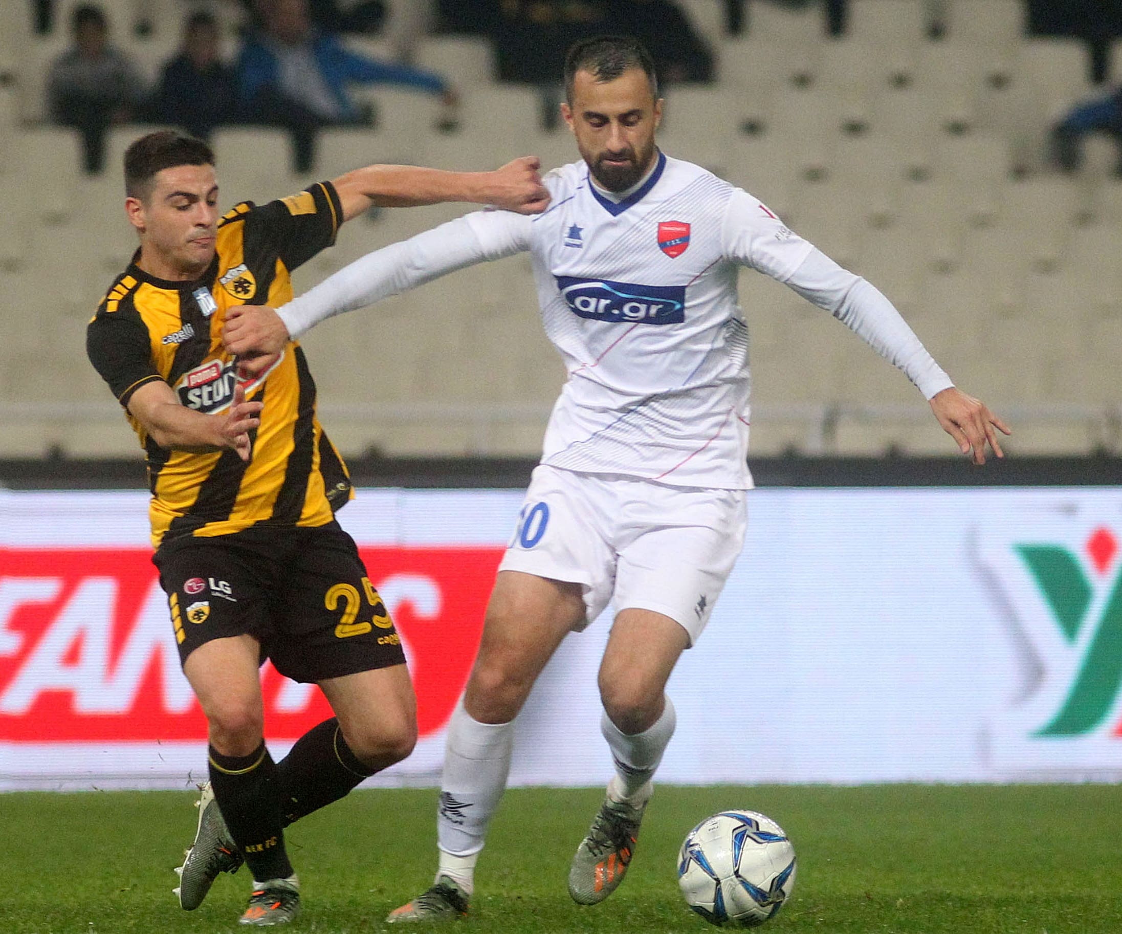 • ΔΥΟ: Κι ενώ στην αρχή του ματς (κοντά στο ένα 15λεπτο) ο Καρέρα …θα γύρισε προς τον ΄Ιλια και θα τον ρώτησε «Μα καλά, η ΑΕΚ…δεν βγήκε από τα αποδυτήρια; Της συμβαίνει ό,τι μου έχεις περιγράψει για το διάστημα μετά το 60ό λεπτό, με τον Παναθηναϊκό;»! Απάντησε δεν πρέπει να πήρε, γιατί ο Ολιβέϊρα στο 17΄επανέλαβε την επιτυχία, που είχε στο 14΄κι αυτή την φορά τόσο ο Χαλκιδικιώτης (= περιοχή Γιώργου Μπίκα- Μπαοκτζή, κατοίκου Τούμπας) επόπτης Αλέξανδρος Τσακαλίδης (= ο άλλος ήταν ο Πατρινός Ανδρέας Μεϊντάνης) , όσοι και οι VARίστες Αθανάσιος Σέζος (Κιλκίς)- Θ.Μωϋσιάδης(Ηπείρου) δεν οδήγησαν τον Αρτινό διαιτητή Αριστομένη Κουτσιαύτη σε μη κατακύρωση του δεύτερου γκολ (= λόγω μη καταλογιζόμενου οφσάϊντ, όταν ο σκόρερ είναι εκτεθιμένος …κατά ένα χιλιοστό, κατά μία τρίχα από τα γένια του)! * Με αυτή την διαιτητική κλοπή (= του πρώτου γκολ της ΑΕΚ), ο Καρέρα «θα μειδίασε» με νόημα για τα όσα τον έχουν προειδοποιήσει για την «χούντα των μαυρο-κόκκινων της ΚΕΔ»! Και χωρίς να μπορεί να προβλέψει τα Κυριακάτικα, όπου η «σφαγή» του Βόλου, προς όφελος του πάο, με κίβδηλο «πέναλτι» στο πι και φι (7΄) υπέρ του Δωνοτριφυλλιού.