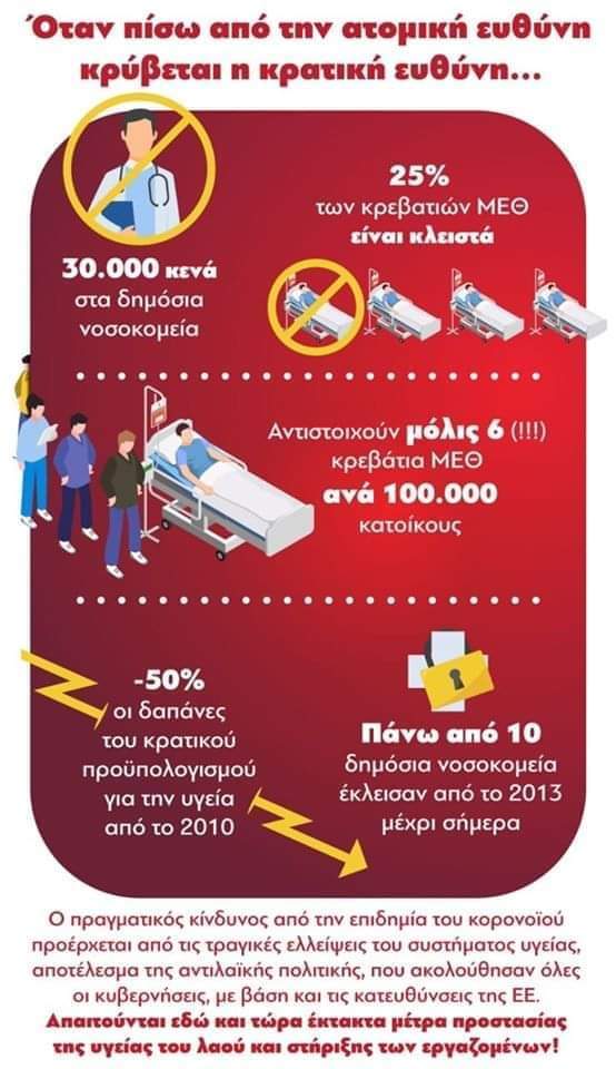 Όπως πολύ σωστά περιγράφει και η φωτογραφία, τα ατομικά μέτρα προστασίας που οφείλουμε να πάρουμε δεν μπορούν να αντικαταστήσουν την πρόληψη του κράτους και την χρηματοδότηση του συστήματος υγείας. Το κενό που δημιουργήθηκε από τις ιδιωτικές κλινικές που σήμερα σφυράνε αδιάφορα στο πρόβλημα με την μέχρι τώρα ανοχή της κυβέρνησης, δείχνει ότι η πανδημία δεν κοιτάζει την ταξική καταγωγή εκείνου που θα προσβάλει αλλά η αντιμετώπισή της είναι 100% ταξική.