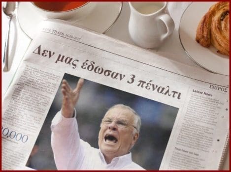 - Κατέβηκε λέει ο Βαγγέλας στα αποδυτήρια και είπε στους παίκτες του Ολυμπιακού πως αν δεν πάρουν το πρωτάθλημα θα τους διώξει όλους. Λες και δεν θα το κάνει έτσι και αλλιώς. Πως αλλιώς θα γίνουν οι καταπληκτικές δουλειές με τους μανατζαρέους;