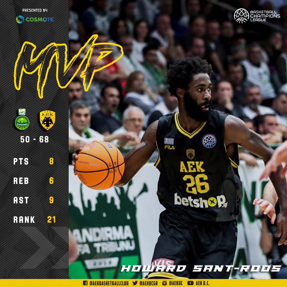 Για ακόμη μια φορά ο Σαντ Ρος έκανε ένα εξαιρετικό παιχνίδι. Αυτό φαίνεται και στα στατιστικά του όπως αποτυπώνονται στην εικόνα του ως MVP. Ελπίζουμε πραγματικά να συνεχίσει την ανοδική του πορεία στην ΑΕΚάρα!