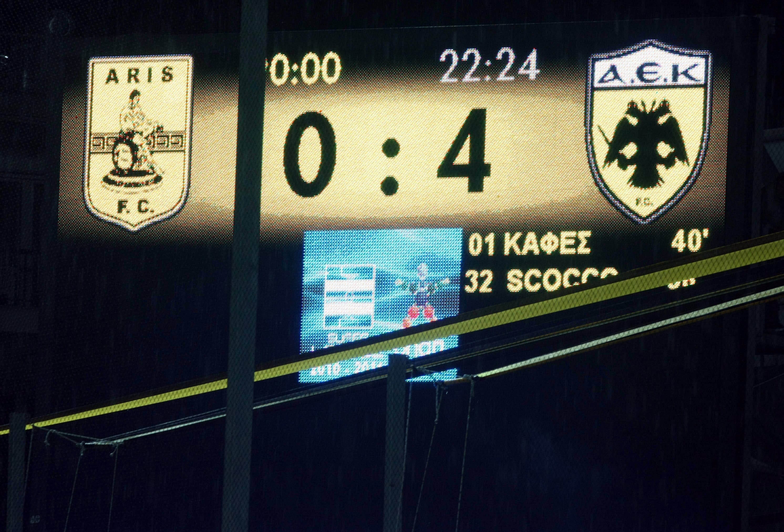 Στο πρώην “Χαριλάου” παρουσιάστηκε μια άλλη ομάδα, η ΑΕΚ, μετά το πρώτο δεκάλεπτο, άρχισε να κυριαρχεί στον αγωνιστικό χώρο. Στο 41ο λεπτό ο Παντελής Καφές άνοιξε το σκορ μετά από ασθενή απόκρουση του Σηφάκη. Στο δεύτερο ημίχρονο δεν άλλαξαν πολύ τα πράγματα, ο Νάτσο Σκόκο με μακρινό δυνατό σουτ διπλασίασε τα τέρματα των κιτρινόμαυρων, στο 58ο λεπτό και στο 68΄ και πάλι ο Αργεντινός έκανε το 3-0. Το σκορ έκλεισε ο Ράφικ Τζιμπούρ στο 92΄, διαμορφώνοντας το τελικό 0-4.