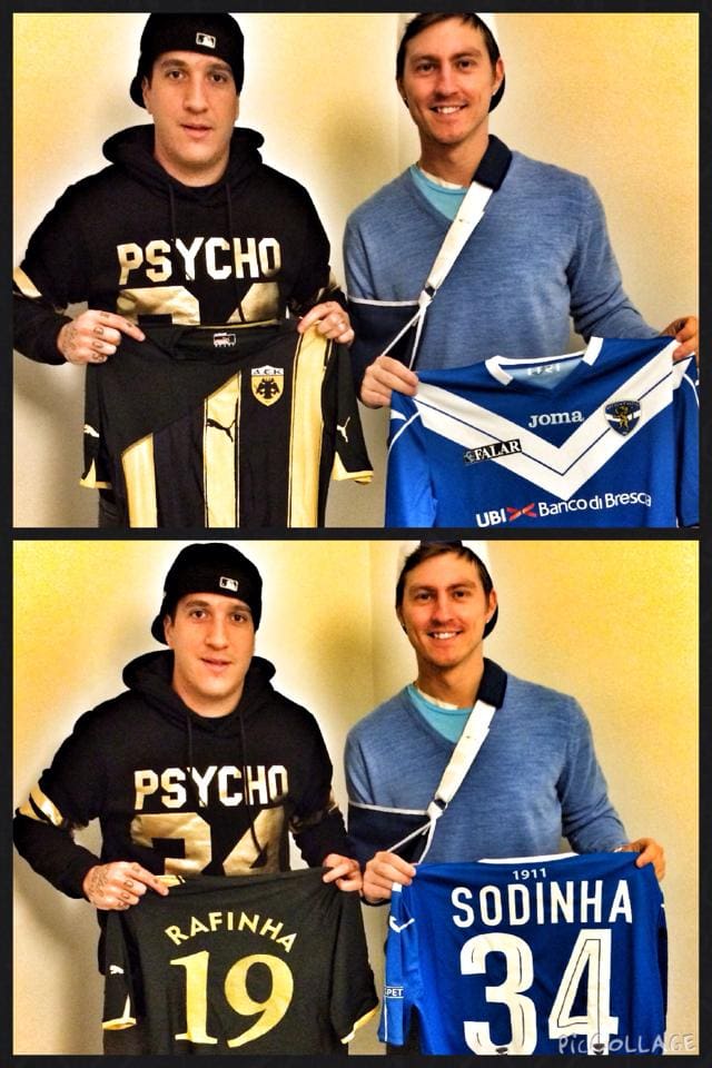 Είναι από τους παίκτες που ξεχωρίζουν στο Campionato… Ο Sodinha της Μπρέσια. Πήρε αγκαλιά την φανέλα της ΑΕΚ και φωτογραφήθηκε με περηφάνεια… Δεν είναι μοντάζ… Ο Sodinha είναι πολύ φίλος με τον αρχηγό της ΑΕΚ Λονδίνου, συμπατριώτη του Rafinha και βρέθηκαν ανταλλάσοντας φανέλες! Το AEK LIVE εξασφάλισε τις φωτογραφίες και σας τις παρουσιάζει… Μακάρι να τον δούμε κάποια ημέρα με την φανέλα της ΑΕΚ. Στα αλήθεια…