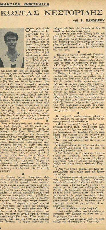 ΜΕ ΕΝΔΙΑΦΕΡΟΝΟ ένας και μοναδικός Κώστας Νεστορίδης Published 4 έτη agoon 29 Ιουλίου 2022By Νικόλας Αγγελίδης Views 1.683Φεβρουάριος 1958 και το αθλητικό περιοδικό της εποχής “Τα Σπορ” κάνει μεγάλο αφιέρωμα στον Κώστα Νεστορίδη.Διαβάστε τη συνέντευξη – παρουσίαση του μεγάλου μας Νέστορα από τον του Ι. ΒανδώροΑρχείο Νικόλα Αγγελίδη Related Topics: Up NextΜια Κυριακή ξεκίνησα… για τον Θωμά τον Μαύρο Don't MissΣαν θα ‘ρθεις στης Φιλαδέλφειας τα μέρη… Νικόλας ΑγγελίδηςΜε ρίζα από την Πόλη και παππού αθλητή της πρώτης ομάδας βόλεϊ της ΑΕΚ δεν θα μπορούσα παρά να είμαι παράφορα ερωτευμένος μαζί της Continue Reading Advertisement You may like
