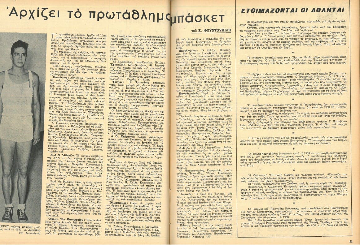 Αφιέρωμα στο πρωτάθλημα μπάσκετ που ετοιμάζεται να ξεκινήσει… Ο θρυλικός Βαγγέλης Φουντουκίδης επιμελλείται το δισέλιδο με το ρεπορτάζ της ΑΕΚ να μιλάει για μια καλή ομάδα που ετοιμάζεται να κατέβει με αξιώσεις στο πρωτάθλημα. Εκείνη τη χρονιά η ΑΕΚ μας, θα πάρει το πρωτάθλημα!