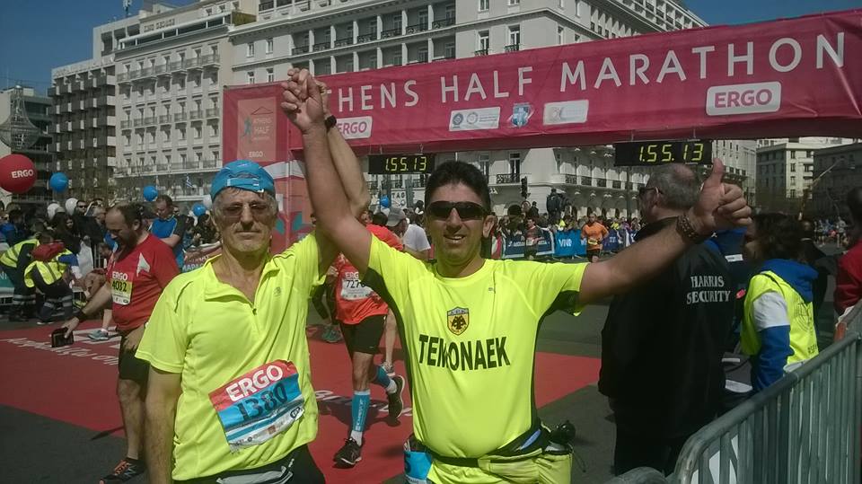 Αμέσως μετά τον τερματισμό, ο Τεμόν ΑΕΚ ανέβασε φωτογραφία στο Facebook με τον Πόντιο συμπατριώτη του. «Τερματίσαμε με την ΑΕΚ στην καρδιά.Μια υπέροχη διαδρομή σε κεντρικούς δρόμους της Αθήνας και περάσματα από ιστορικά μέρη. Συγχαρητήρια σε όλους τους δρομείς και ευχαριστίες στους εθελοντές.Φυσικά ένα μεγάλο ευχαριστώ στον κόσμο που φώναζε “πάμε ΑΕΚΑΡΑ” και μου έδιναν δύναμη στον 1ο μου αγώνα της χρονιάς.Συνεχίζουμε….», ανέφερε το μήνυμα.