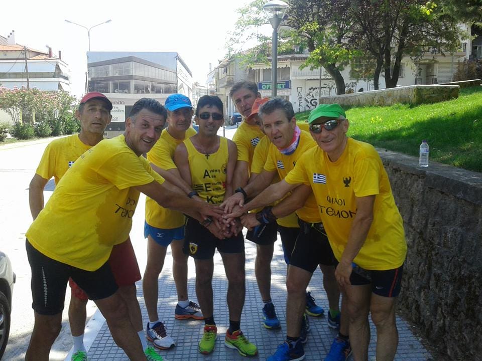 Το ταξίδι του Γιώργου ξεκίνησε απ’το χωριό του, την Άρδασσα. Μαζί του έτρεξαν μέχρι το μοναστήρι της Σουμελάς στην Καστανιά Ημαθίας ο Σύλλογος Δρομέων Οδοιπόρων Πτολεμαΐδας. Εφτά δρομείς απ’το Καϊλάρι (παλιό όνομα της Πτολεμαΐδας) έφτιαξαν κίτρινα T-shirts τα οποία έγραφαν μπροστά, “Φίλοι ΤΕΜΟΝ”.