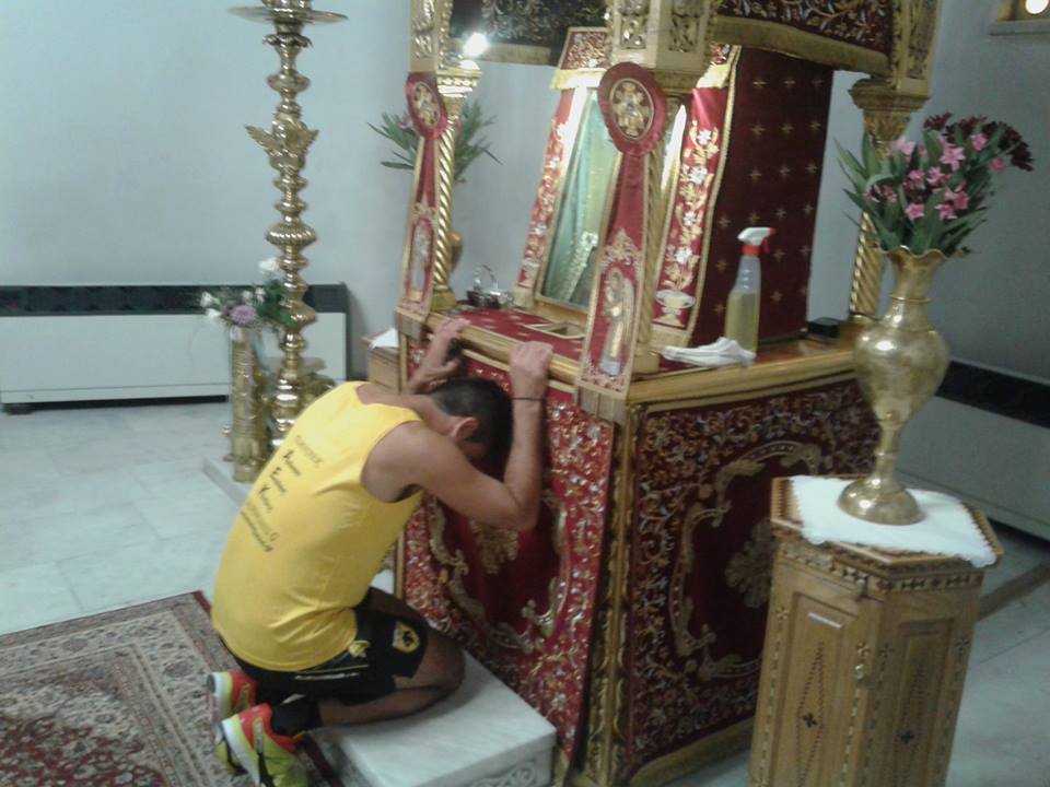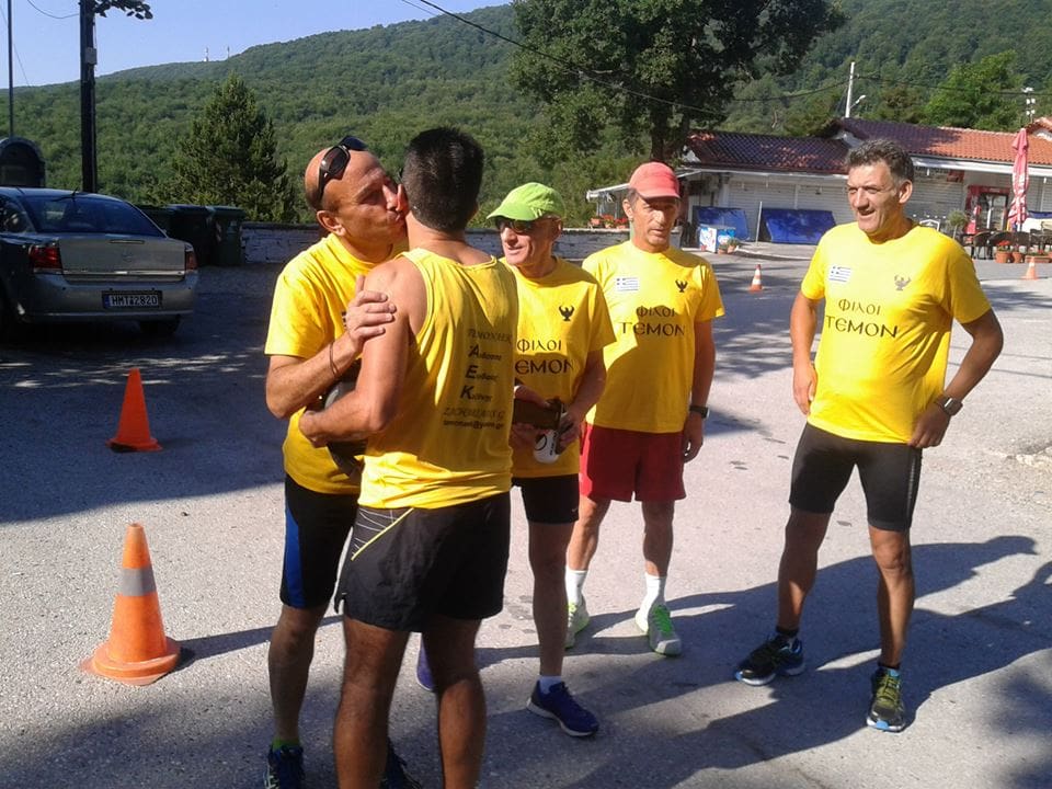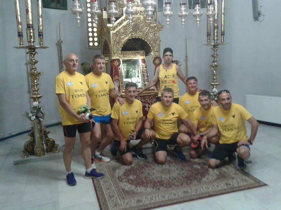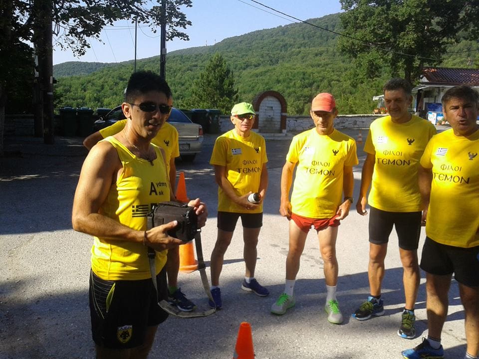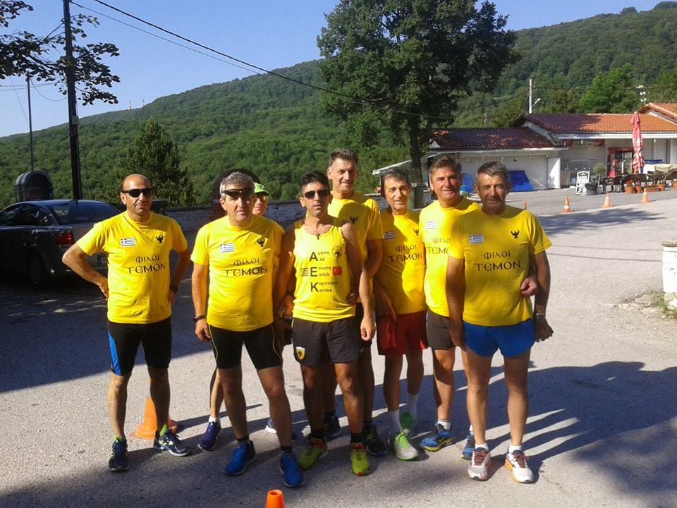 Το ταξίδι του Γιώργου ξεκίνησε απ’το χωριό του, την Άρδασσα. Μαζί του έτρεξαν μέχρι το μοναστήρι της Σουμελάς στην Καστανιά Ημαθίας ο Σύλλογος Δρομέων Οδοιπόρων Πτολεμαΐδας. Εφτά δρομείς απ’το Καϊλάρι (παλιό όνομα της Πτολεμαΐδας) έφτιαξαν κίτρινα T-shirts τα οποία έγραφαν μπροστά, “Φίλοι ΤΕΜΟΝ”.