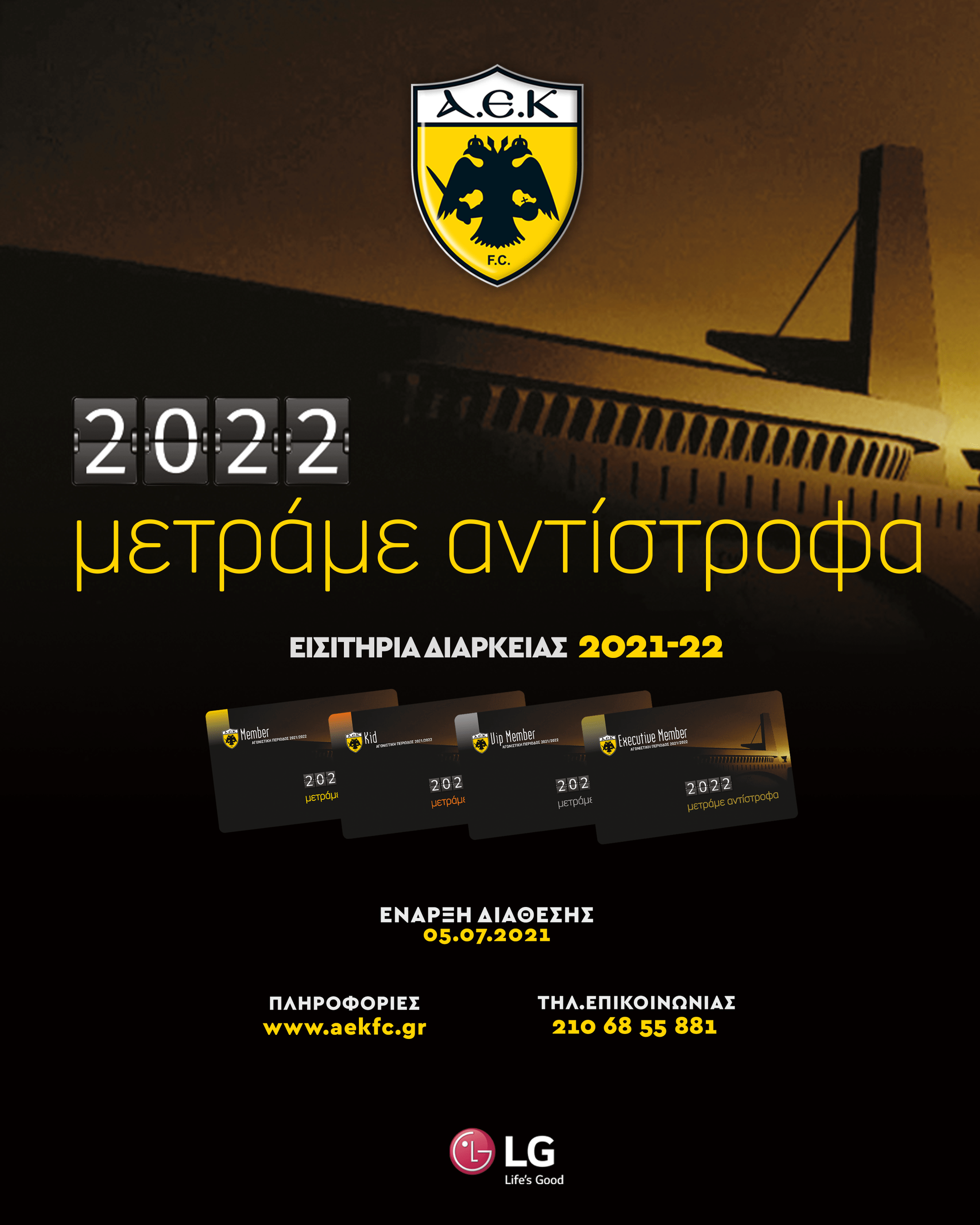 Όποιος πάρει διαρκείας 2021-2022 θα έχει άμεση πρόσβαση στο νέο γήπεδο της ΑΕΚ. Αυτά διαμηνύουν από την ΠΑΕ.