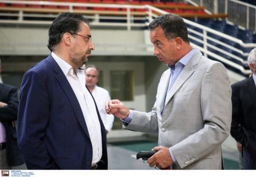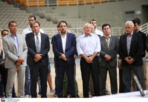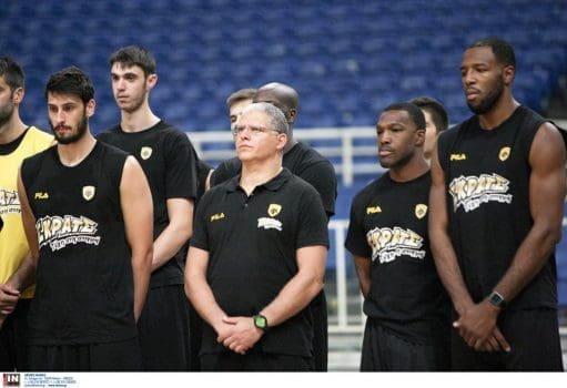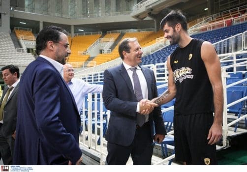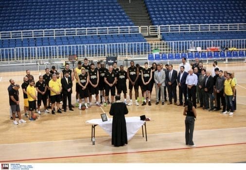 Το «παρών» στο Κλειστό του ΟΑΚΑ έδωσε σύσσωμη η Διοίκηση της ΑΕΚ B.C., προεξάρχοντος του μεγαλομετόχου Μάκη Αγγελόπουλου, ο οποίος μετά το τέλος της τελετής παρακολούθησε την προπόνηση.