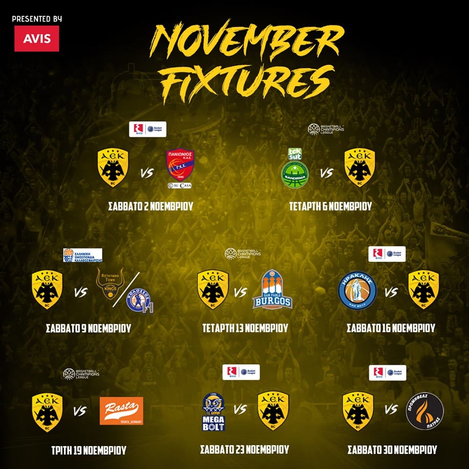 Δείτε τη φωτογραφία της AEK BC με το πρόγραμμα αγώνων για το μήνα που μπήκε σήμερα: