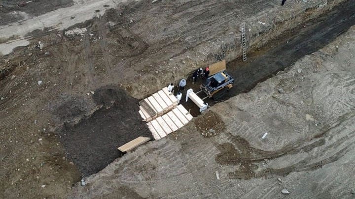 Σοκ έχουν προκαλέσει οι φωτογραφίες που τραβήχτηκαν από ψηλά και δείχνουν ότι χρησιμοποιούνται ομαδικοί τάφοι στις ΗΠΑ. Οι εικόνες ειναι από το απομακρυσμένο νησί Hart Island και δείχνουν ανθρώπους με προστατευτικές στολές να θάβουν τους νεκρούς του κορονοϊού στη Νέα Υόρκη. Το γεγονός επιβεβαίωσε εκπρόσωπος της δημοτικής αρχής της Νέας Υόρκης τονίζοντας ότι “για δεκαετίες το Hart Island χρησιμοποιείται για νεκρούς που τη σορό τους δεν διεκδίκησε κανείς”.