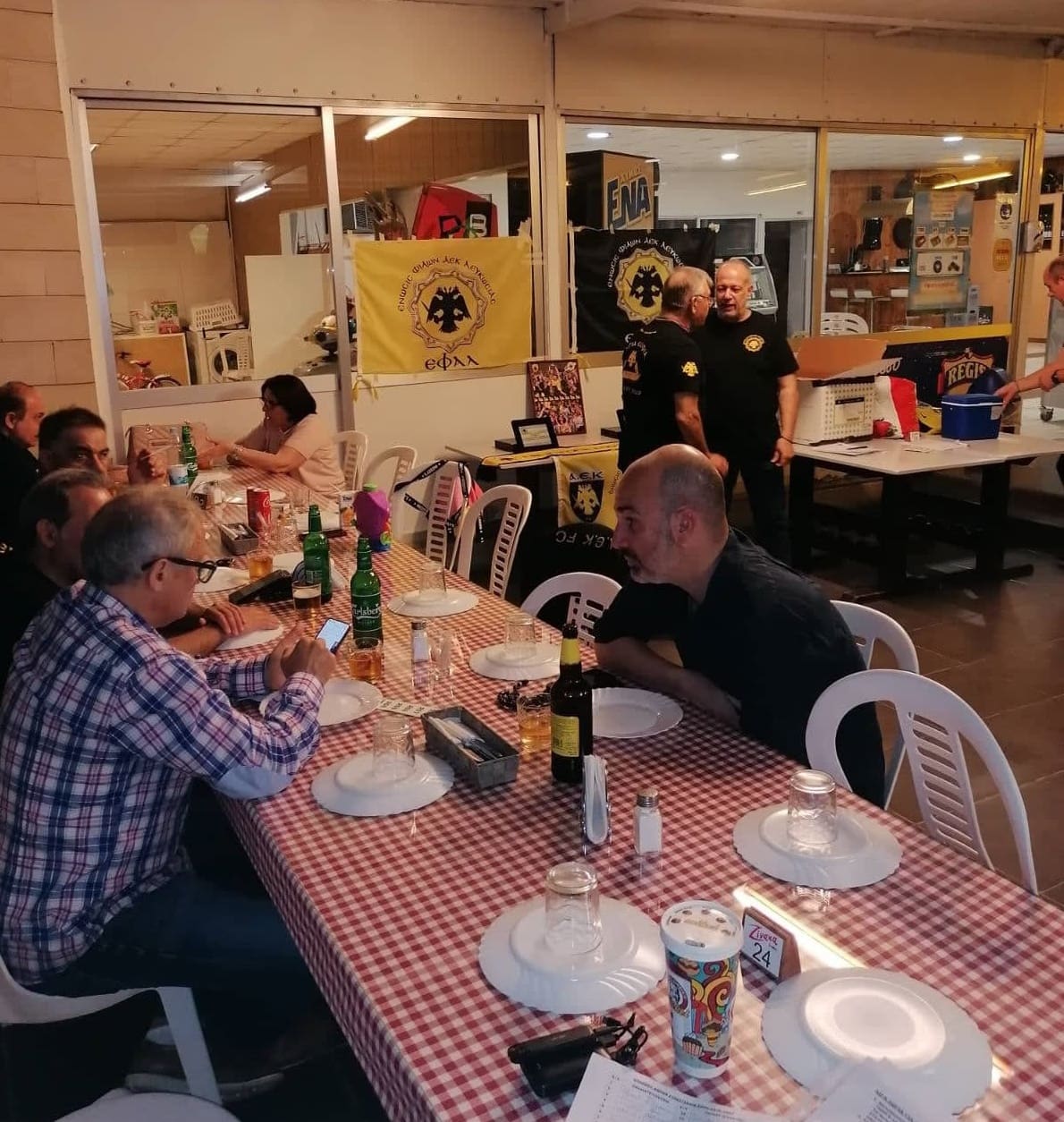 60 και πλέον αετόπουλα όλων των ηλικιών διασκέδασαν και θυμήθηκαν παλιές καλές στιγμές των περασμένων 10ετιών, παρέα με τον “Κουμπάρο” της ΑΕΚ, Γιώργο Σαββίδη. Με τραγούδια, συνθήματα που δονούσαν τον στολισμένο με τα κιτρινόμαυρα χρώματα χώρο, με καλό φαγητό και ποτό, η ΕΦΑΛ πρόσφερε στα μέλη και τους φίλους τους μια υπέροχη βραδιά με κληρώσεις πολλών δώρων, ευχαριστίες στους χορηγούς, ελπίδα κι ευχές για τη νέα ΑΕΚ που οικοδομείται. Η βραδιά έκλεισε με γλυκιές γεύσεις που προσέφερε ο παλαίμαχος ζαχαροπλάστης “άρρωστος” με την ΑΕΚ, Νίκος Αντωνίου (LA Mirage) αφήνοντας όμορφες αναμνήσεις, δίνοντας βέβαια ραντεβού για τη νέα σεζόν στην “Αγία Σοφία” εκεί στο σπίτι κάθε Ενωσίτη.
