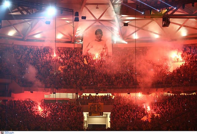 ✓ Η ΑΥΡΑ! Όταν ακούς έναν ποδοσφαιριστή σαν τον Καμερουνέζο παιχταρά Μουκουντί να δηλώνει (στο ματς με τη Λαμία) πως είναι ευτυχής που επιστρέφει στο… Σπίτι, εννοώντας προφανώς το Γήπεδό μας, τότε συνειδητοποιεί κανείς την αύρα και τη δυναμική που προσφέρει ο Ναός στους ποδοσφαιριστές μας! Το “πυρηνικό όπλο” της Α.Ε.Κ είναι το Γήπεδο στη Νέα Φιλαδέλφεια .+ –