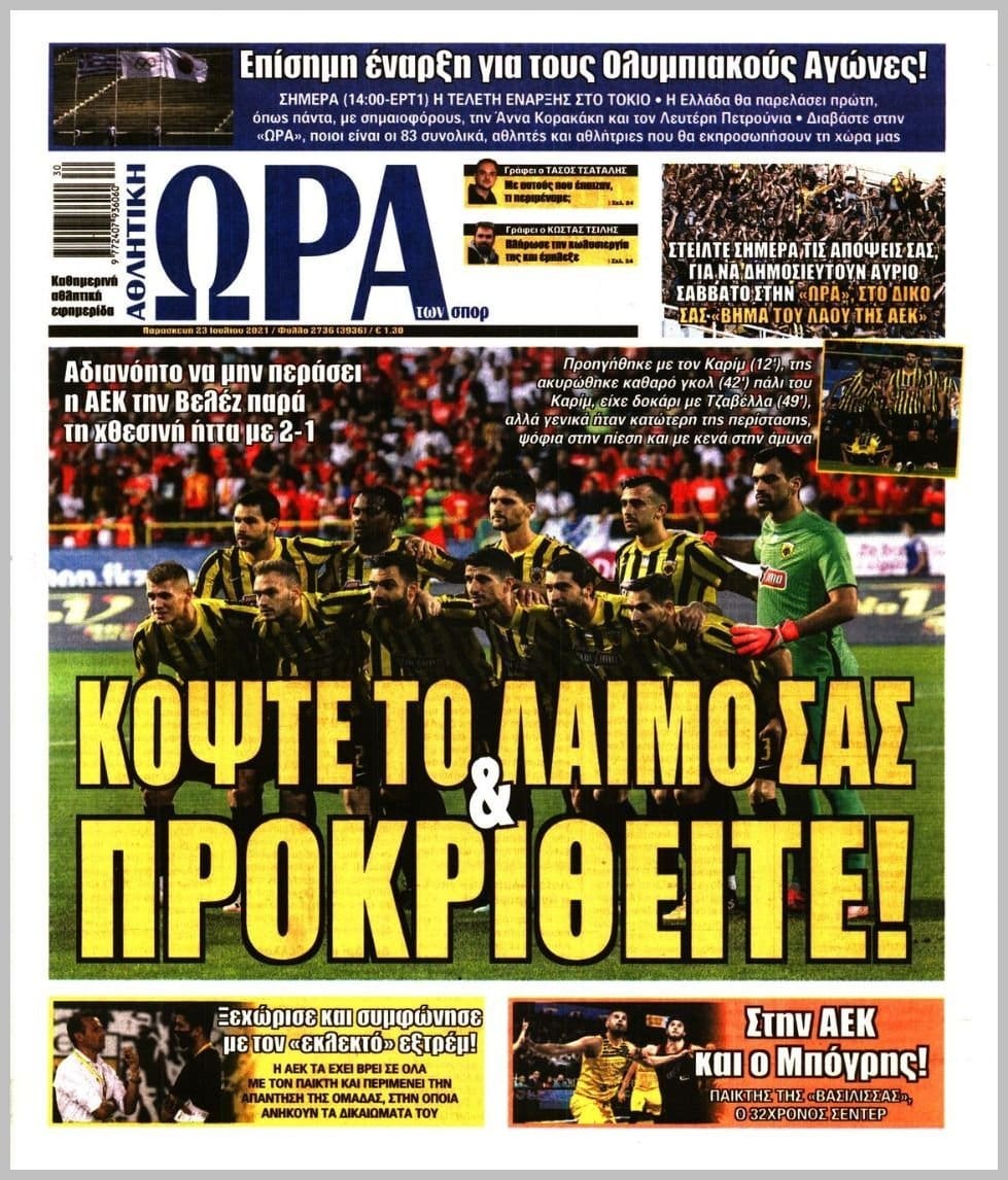 Γράφουν όλοι τώρα ότι είναι αδιανόητο να μην περάσει η ΑΕΚ αυτή την Βελέζ. Τόσο καιρό που φωνάζουμε εκλιπαρώντας για σοβαρές μεταγραφές, είμαστε κακοί, κλαψιάρηδες και εχθροί της ΑΕΚ… Αυτά… Πονάμε…