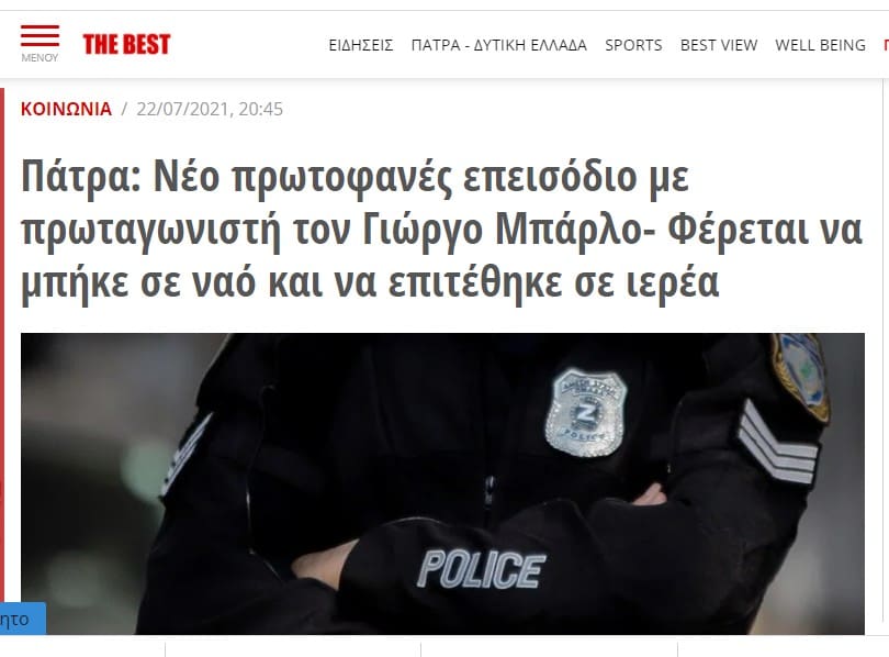 Λέγεται Μπάρλος (!) και είναι πρόεδρος της Παναχαϊκής… Τον πήγαν χθες που λέτε στο αστυνομικό τμήμα για καταγγελία επεισοδίου με εφημέριο του Ιερού Ναού Αναλήψεως στο Ψαροφάι. Δεν είναι το πρώτο περιστατικό του είδους μαθαίνουμε αφού ο κ. Μπάρλος είχε έρθει σε γερή κόντρα πριν λίγο καιρό και με τον Μητροπολίτη Πατρών Χρυσόστομο. Προσοχή στο παπαδαριό ρε πρόεδρε…
