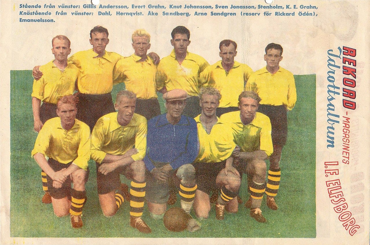 Για την Ελφσμποργκ… θα γράψω μια αράδα μοναχά… ΔΕΝ είναι αμελητέα ποσότητα… Πρώτα απ’ όλα φοράει κιτρινόμαυρα, οπότε τη σεβόμαστε… Ιδρύθηκε 20 χρόνια πριν από την ΑΕΚ, το 1904. Να μια φωτογραφία, την εποχή του πολέμου… 1941-1942…