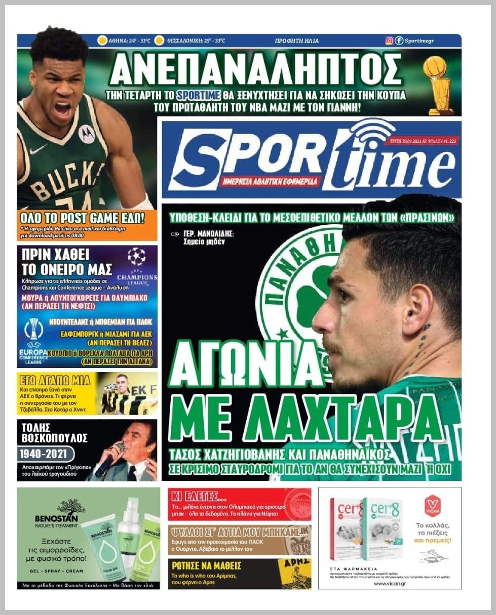 Εντυπωσιακό το πρωτοσέλίδο της Sportime. Κάθε τίτλος είναι και τίτλος τραγουδιού του Βοσκόπουλου!