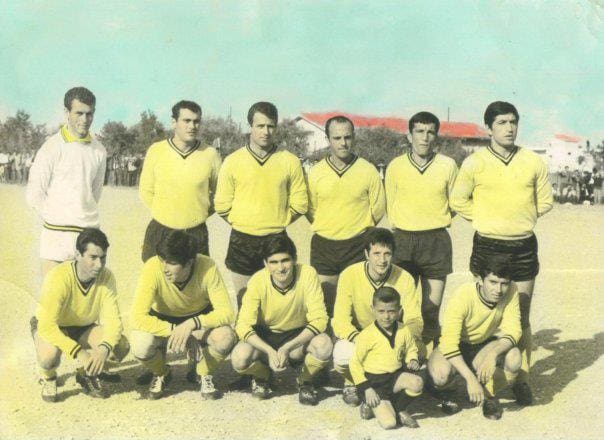 Από τα κιτρινόμαυρα στα κιτρινόμαυρα. Ο Μπάμπης Ψιμόγιαννος με την φανέλα του Άρη Αγίου Κωνσταντίνου. Στην κάτω σειρά δεύτερος από αριστερά