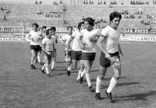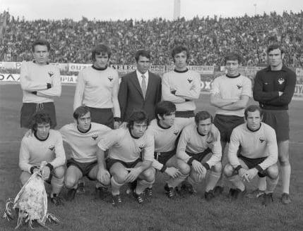 12 Ιουλίου 1970. Στο γήπεδο του Αιγάλεω ο Άρης Αγίου Κωνσταντίνου κερδίζει την άνοδο στην Β’ Εθνική στον τρίτο αγώνα μπαράζ κόντρα στον Πανηλειακό. Διακρίνονται μαζί με τον Μπάμπη Ψιμόγιαννο, ο Γιάννης Τσίκας, ο Εμμαουήλ Στέργιος που είχε το ψευδώνυμο “Νταής”, ο Δημήτρης Τσίκας, Ο Γιώργος Μαντζαβίνος (Σγούπας), ο Στρατής Ρουμελιώτης, (Μαλλιάς), ο Στέλιος Αναστασίου, ο Γιώργος Χρήστου, ο Μπάμπης Σελινόπουλος, Ο Βαγγέλης Λεοντής (φωτοβολίδας) και ο Λάμπρος Φιλίππου.