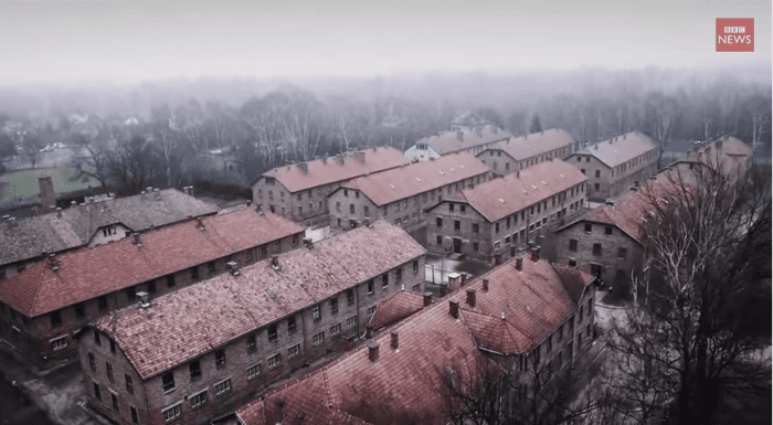 Ένα drone του BBC πέταξε πάνω από το εγκαταλελειμμένο στρατόπεδο στην Πολωνία και κατέγραψε συγκλονιστικές εικόνες. Το βίντεο ξεκινάει με τις ράγες του τρένου, που έφταναν μέχρι το εσωτερικό του στρατοπέδου και τα ερείπια ξύλινων κτιρίων. Τα περισσότερα θύματα έφταναν με το τρένο στο στρατόπεδο ύστερα από πολυήμερα ταξίδια. Αφού περνούσαν την είσοδο του στρατοπέδου και τη σιδερένια πόρτα στην οποία αναγραφόταν η φράση: «Arbeit Macht Frei» (που σήμαινε «η εργασία θα σας απελευθερώσει»), οδηγούνταν στα δωμάτια διαλογής. Εκεί οι γιατροί, ανάμεσα τους και ο διαβόητος Γιόζεφ Μένγκελε, ξεχώριζαν τους αδύναμους, τις γυναίκες με τα παιδιά και τους νέους άντρες που ήταν ικανοί για εργασία. Ο Μένγκελε ξεχώριζε και παιδιά ή γυναίκες για τα διεστραμμένα πειράματά του.