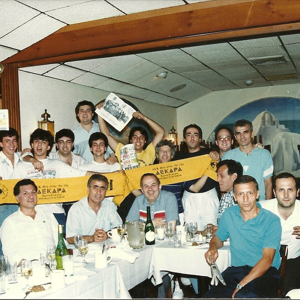Η ιστορία έχει πάντα δίπλα της πραγματικές εικόνες για να την στηρίζουν… Πριν 32 χρόνια… Ο θρυλικός ΣΥΝΔΕΣΜΟΣ ΟΠΑΔΩΝ ΑΕΚ ΝΕΑΣ ΥΟΡΚΗΣ, υποδέχεται τον Μίμη Παπαϊωάννου, τον Απόστολο Τόσκα και τον Βασίλη Γκούμα στο μαγαζί του αξέχαστου Φάνη Καπάρου (αριστερά από τον Μίμη). Η φωτογραφία είναι αφιερωμένη στον Φ.Κ. που τότε την είχε δημοσιεύσει στον “Δ”ικέφαλο μας. Και με αφορμή… το κείμενο του για τη συνάντηση του μεγάλου μας Μίμη με τον Νίκο Πανταζή και τις οικογένειες τους! Ανάμεσα στον Μίμη και τον Βασίλη Γκούμα, ο μαθουσάλας του ελληνικού μπάσκετ στη Νέα Υόρκη, Γιάννης Κωστάλας, μια ακόμη μυθική μορφή…